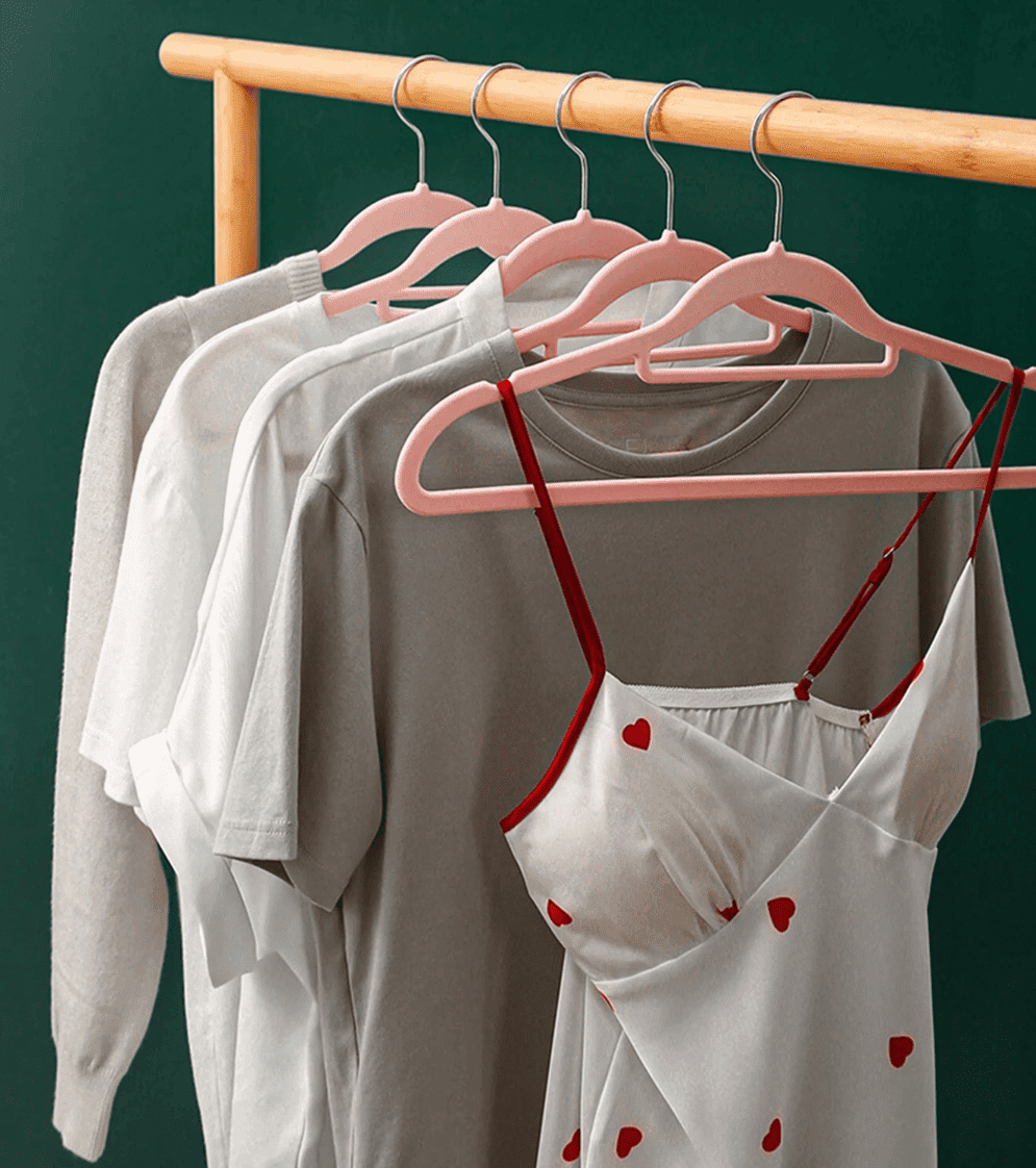 • Žametna površina preprečuje, da bi oblačila zdrsnila z njih.