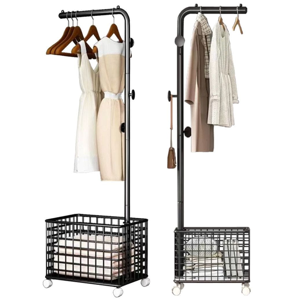 Stojni kovinski obešalnik s škatlo za shranjevanje SCANDI+ črn Celoten opis
