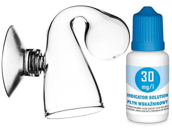 Indikator ogljikovega dioksida omogoča stalno spremljanje koncentracije ogljikovega dioksida v akvariju. Preprosto napolnite indikator z indikatorsko tekočino (priložena 10 ml steklenička) in barva indikatorja bo prikazovala raven CO2 v akvariju. Za razliko od plastičnih indikatorjev je stekleni še posebej privlačen in estetsko prijeten.