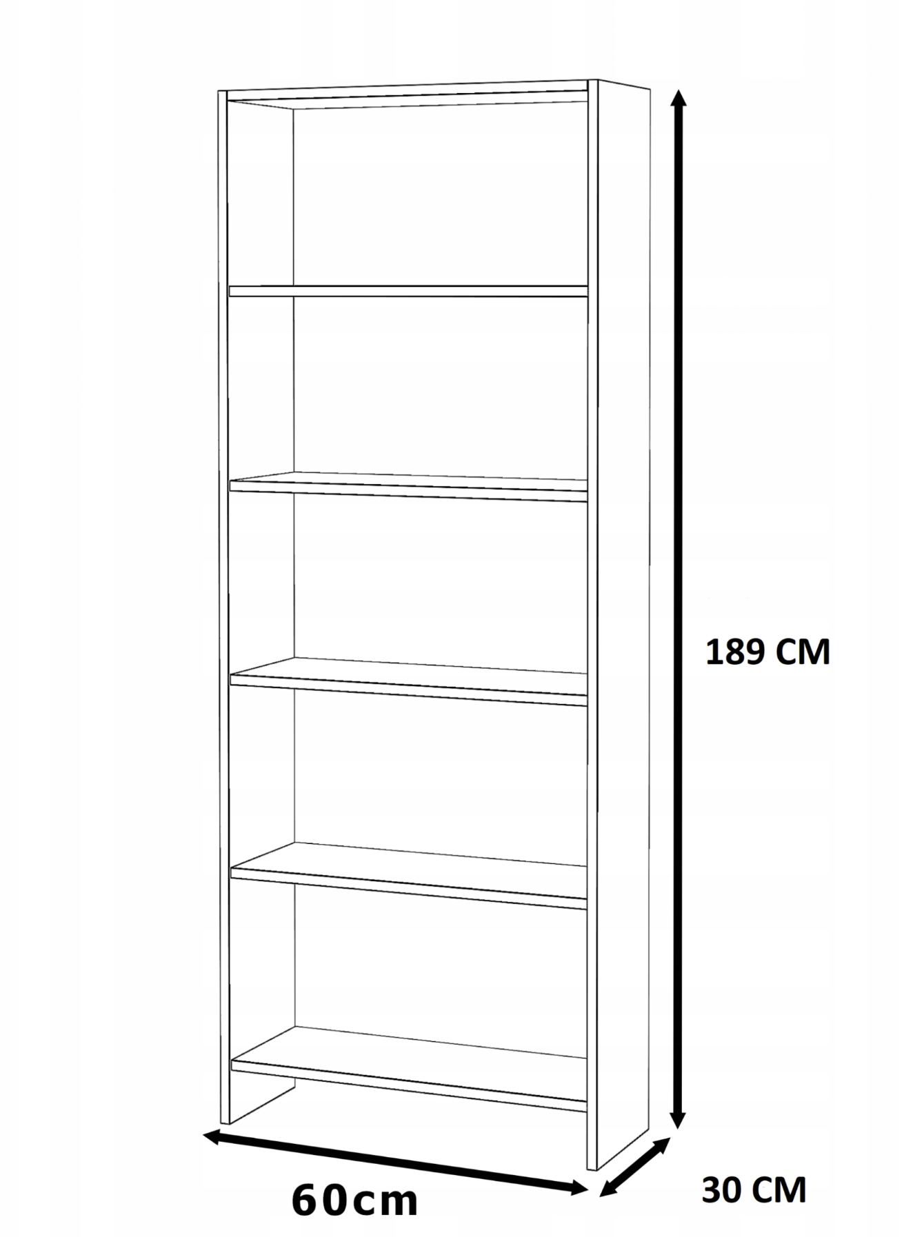 Bela pisarniška knjižna polica 60 CM, 5 polic, podstrešna polica za igrače