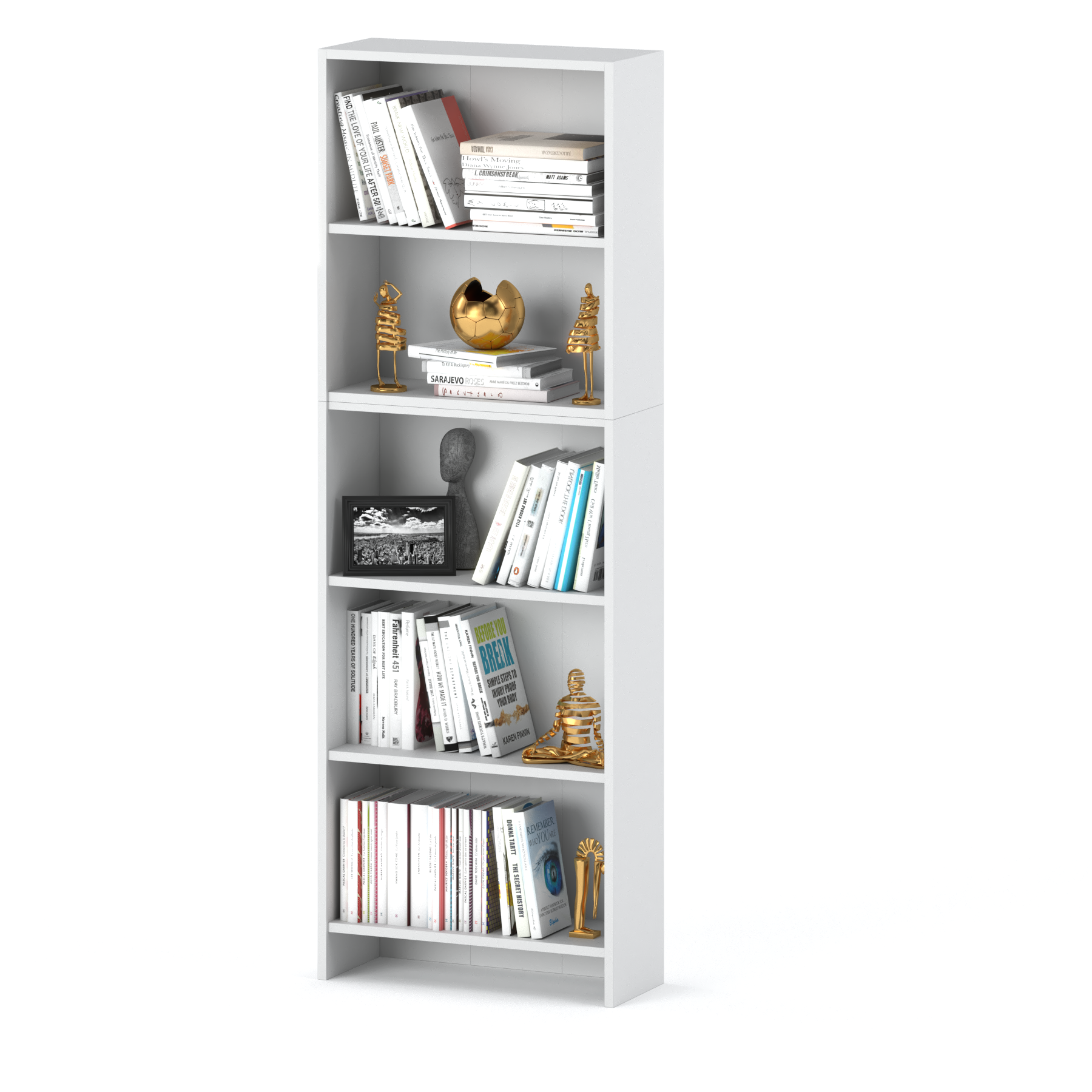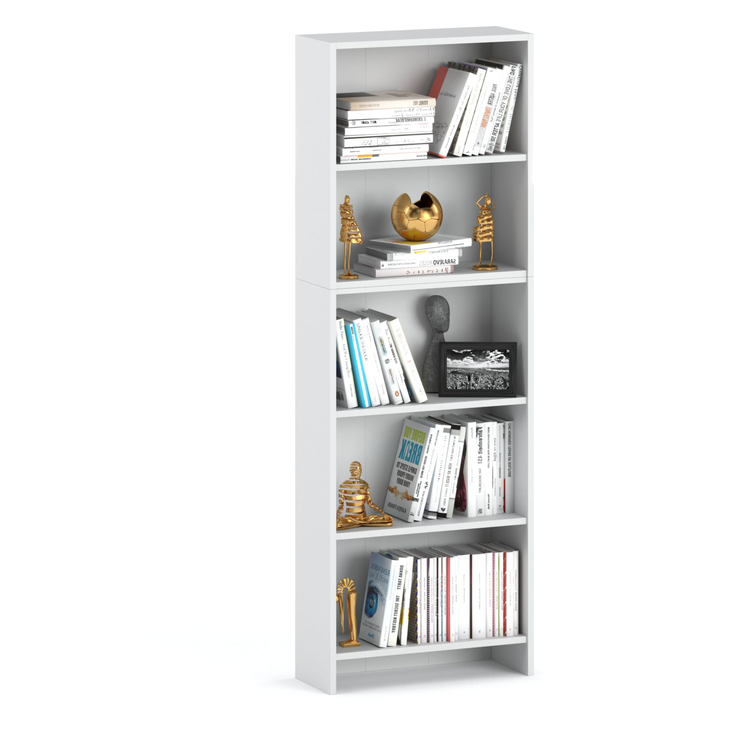 Funkcionalnost:5 polic vam omogoča shranjevanje knjig, okraskov, registratorjev, igrač in drugih manjših predmetov.