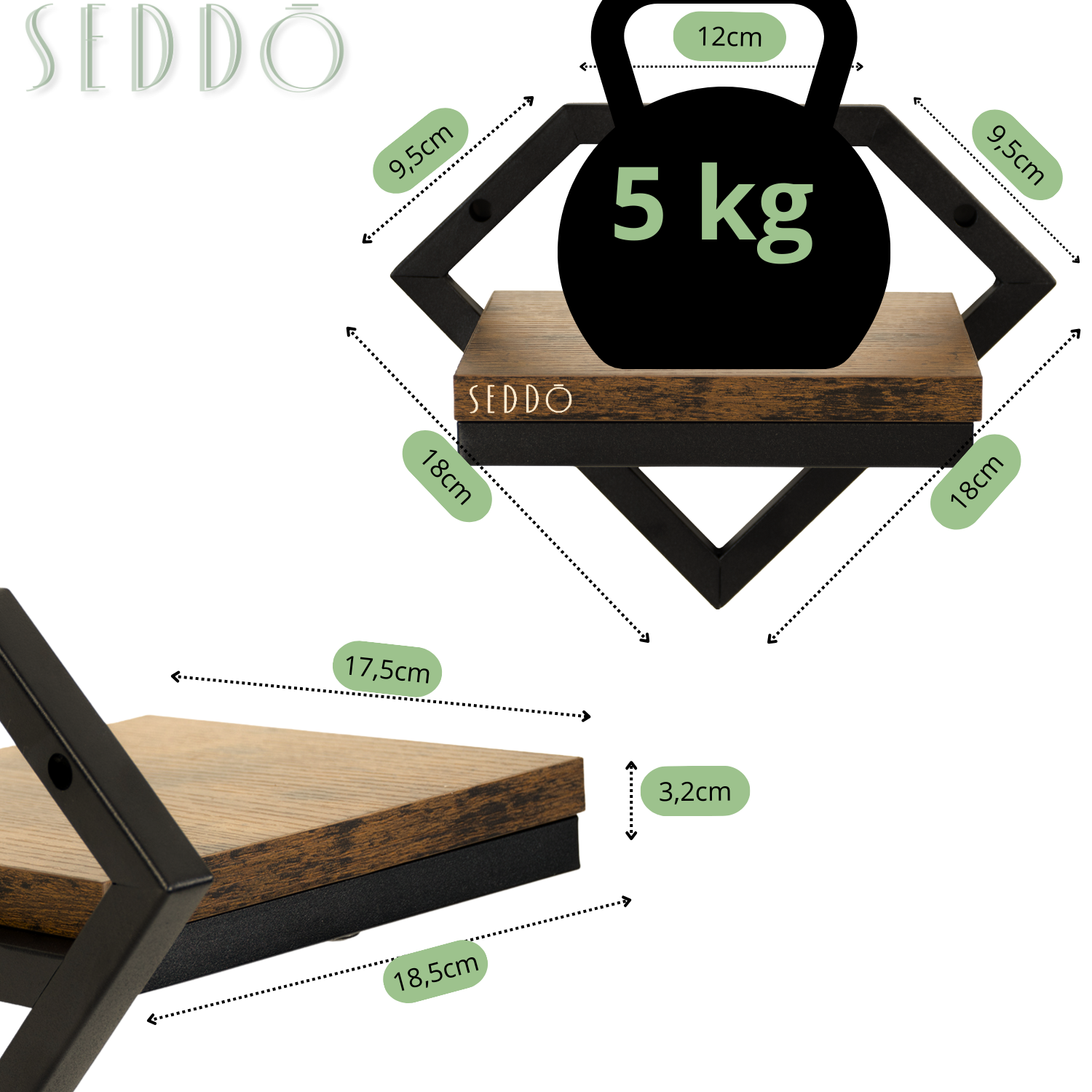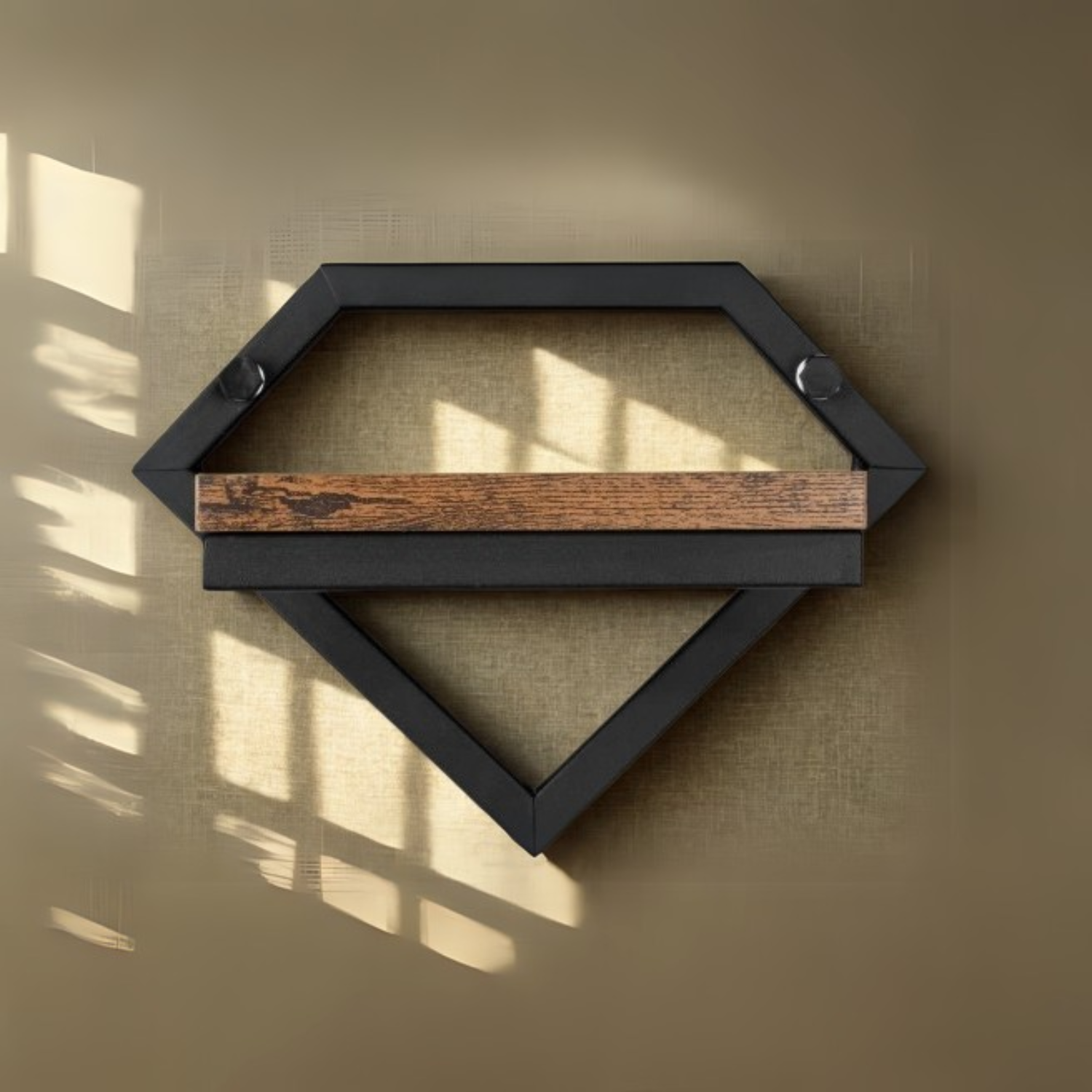 Enonivojska viseča polica v podstrešnem slogu je minimalističen poudarek , ki se bo odlično podal v katero koli notranjost. Geometrijska oblika in kontrastna kombinacija črne kovine in temnega lesa ustvarjata eleganten in industrijski videz. ⚡️ENA POLICA – VEČ UPORAB⚡️