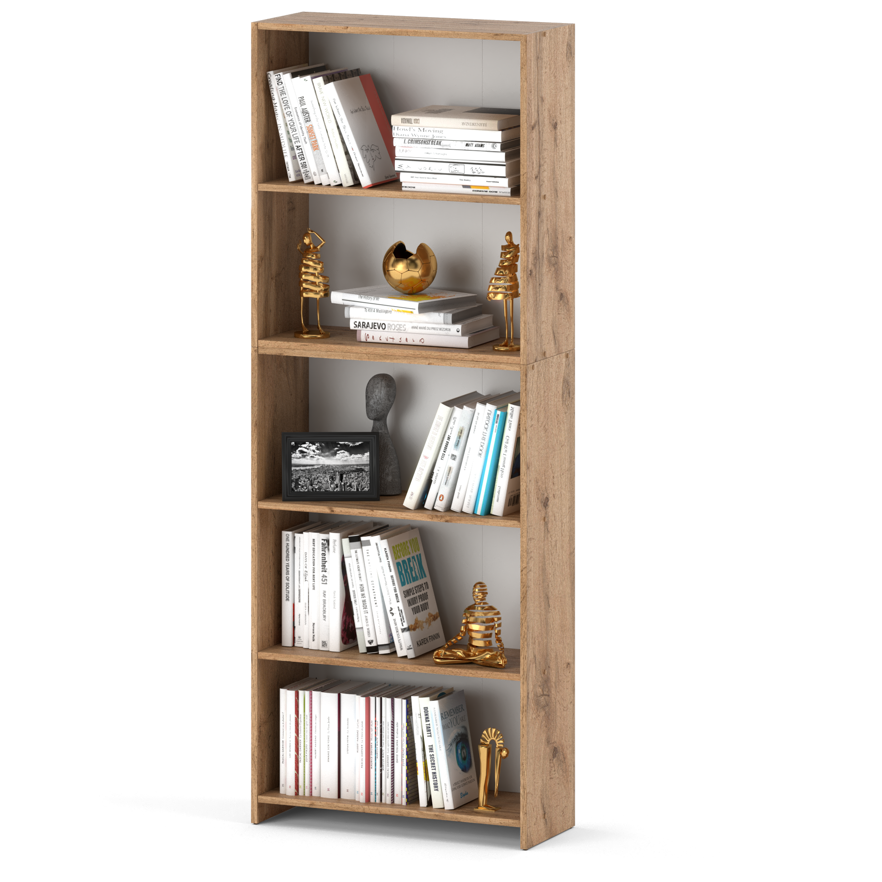 - Enostavna montaža: Zahvaljujoč preprostim navodilom je knjižna omara sestavljena hitro in brez težav, kar vam omogoča takojšnjo uporabo.