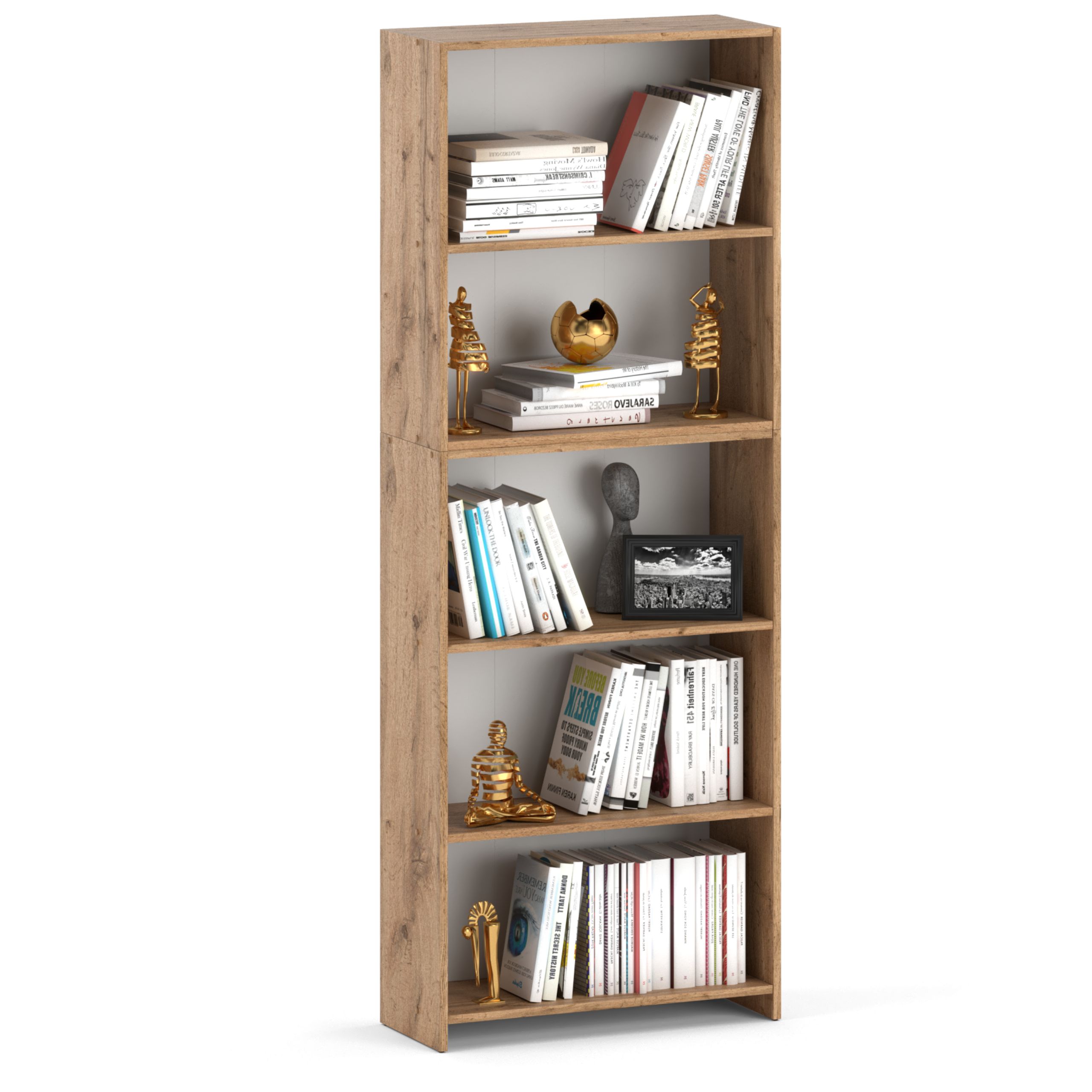 shumee Knjižna omara iz hrasta Wotan 70 CM, 5 polic, veziva, igrače, podstrešje, leseno