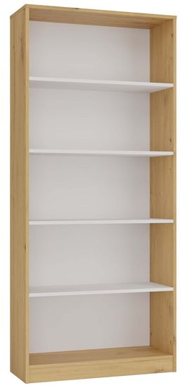 Polica R80 je elegantna in praktična rešitev za shranjevanje knjig, fasciklov, okraskov in pisarniških potrebščin. Kombinacija toplega odtenka artisan hrasta s kontrastnimi belimi policami daje pohištvu sodoben in eleganten značaj. Odlična bo za pisarno, dnevno sobo, otroško sobo ali celo domačo knjižnico.
