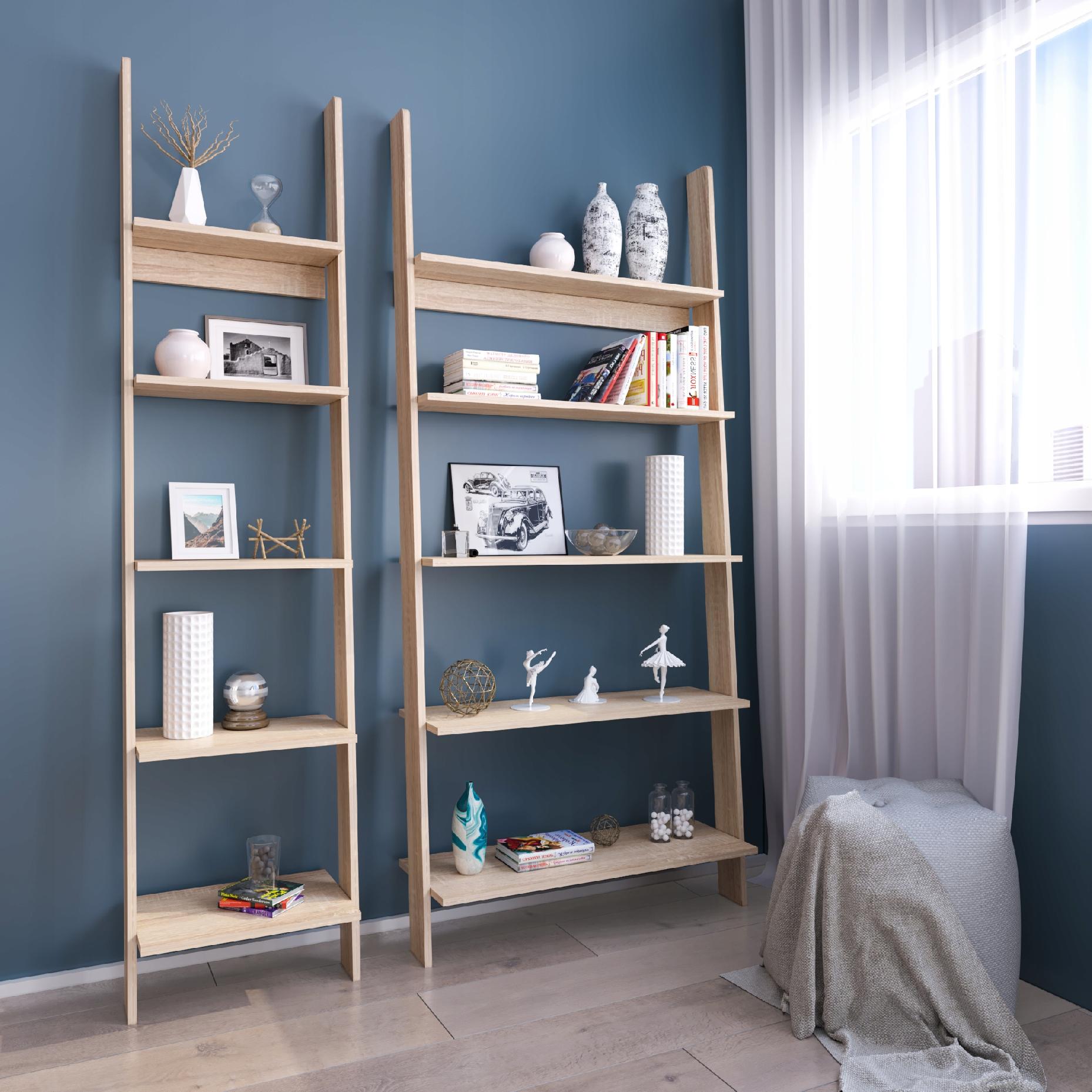 Lestvena polica – praktičen kos pohištva za vse priložnosti. Police so nameščene na okvirju, ki spominja na lestev. Pet prostornih polic olajša shranjevanje skoraj vsega, od velikih knjig do majhnih figuric. Z uporabo ivernih plošč namesto masivnega lesa ta izdelek za proizvodnjo porabi manj lesa. To nam pomaga biti okolju prijaznejši.
