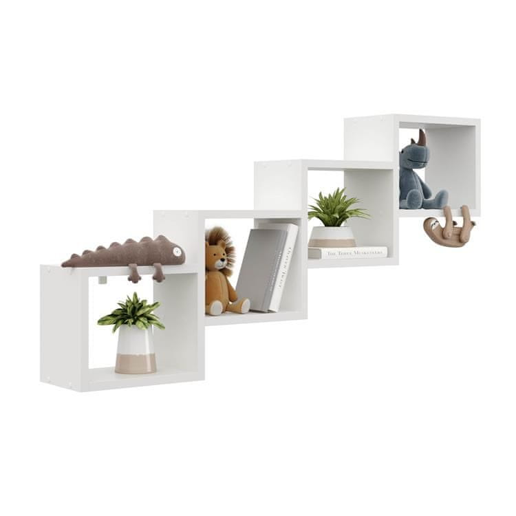 Viseča polica za poševne strope je bila navdihnjena z geometrijskimi oblikami . Ima odprte police , ki jih je mogoče uporabljati na več načinov. Pomagal vam bo organizirati težko urejene poševne strope v dnevni sobi , spalnici ali v otroški sobi . Odlično se bo obnesel tudi, če boste obesili ob stopnicah na hodniku ali v garderobi. Stenska polica za poševne strope je na voljo v več barvnih različicah . Tako jo boste lažje vključili v zasnovo prostora, v katerega jo boste postavili. Tehnični podatki: