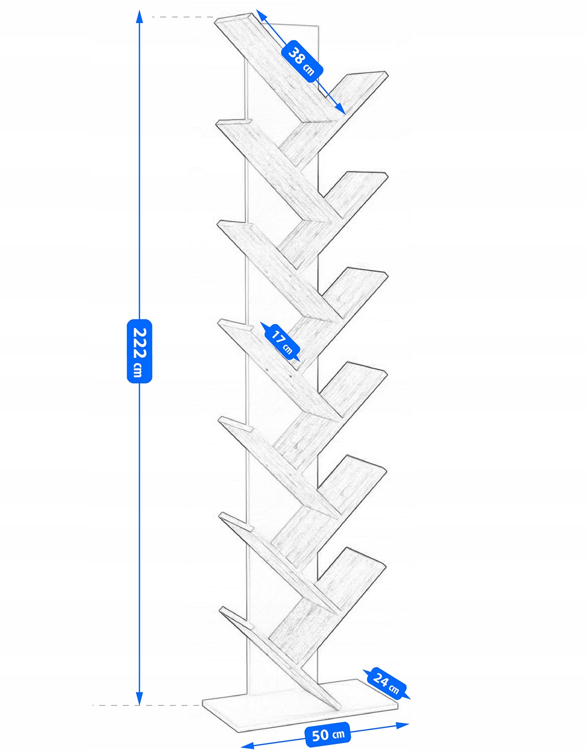 12 polic zagotavlja veliko prostora za shranjevanje knjig različnih velikosti. Popolnoma se bo dopolnjevala z različnimi slogi notranje opreme. Polica ima stabilno podlago , ki zagotavlja varno postavitev v kateri koli sobi. Specifikacija: