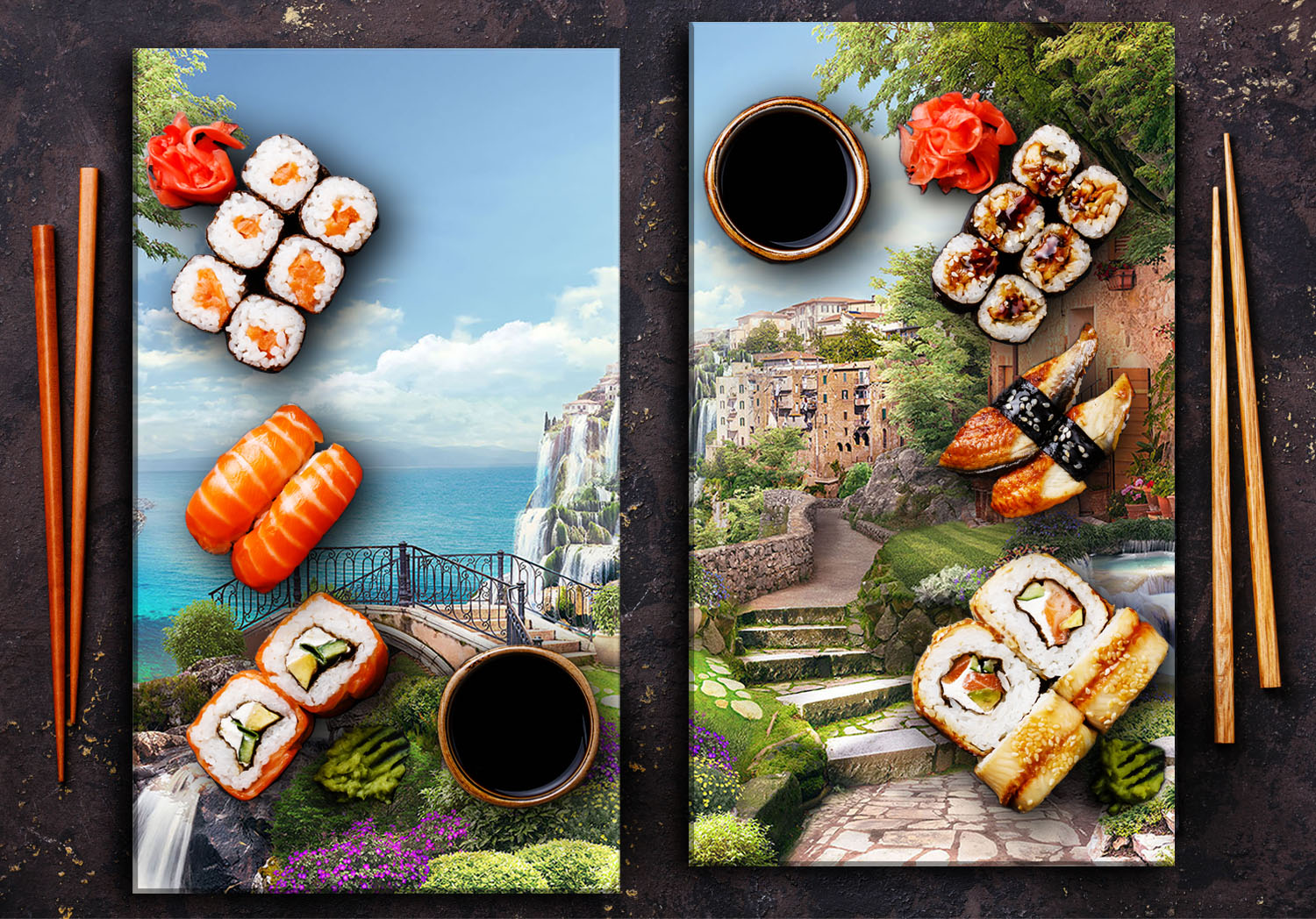 shumee Steklena deska 2x 30x52 pokrajina