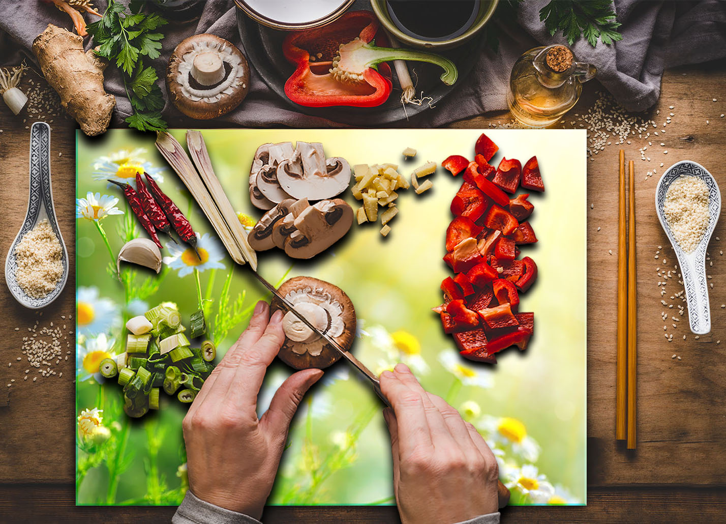 Steklena deska za sekanje kaljenih 30×22 cvetov Celoten opis