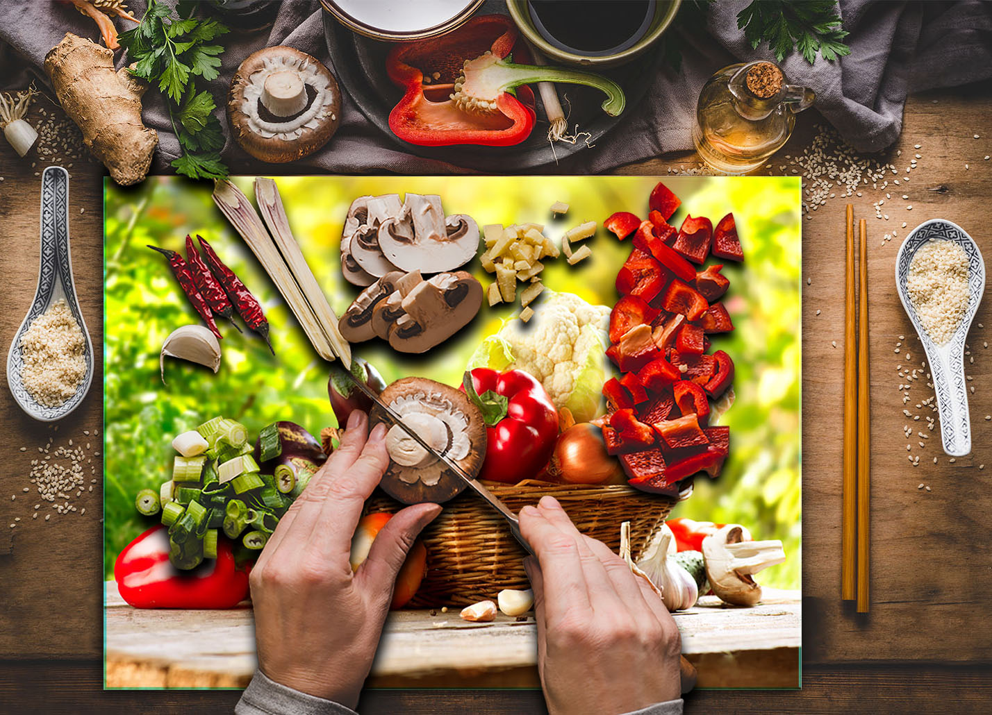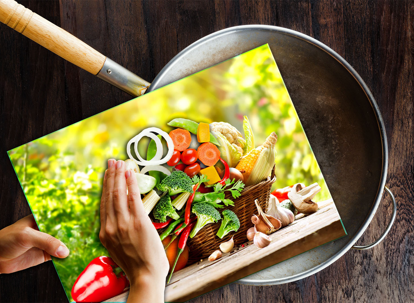 Steklena deska za sekanje kaljenja 30×22 zelenjava Celoten opis