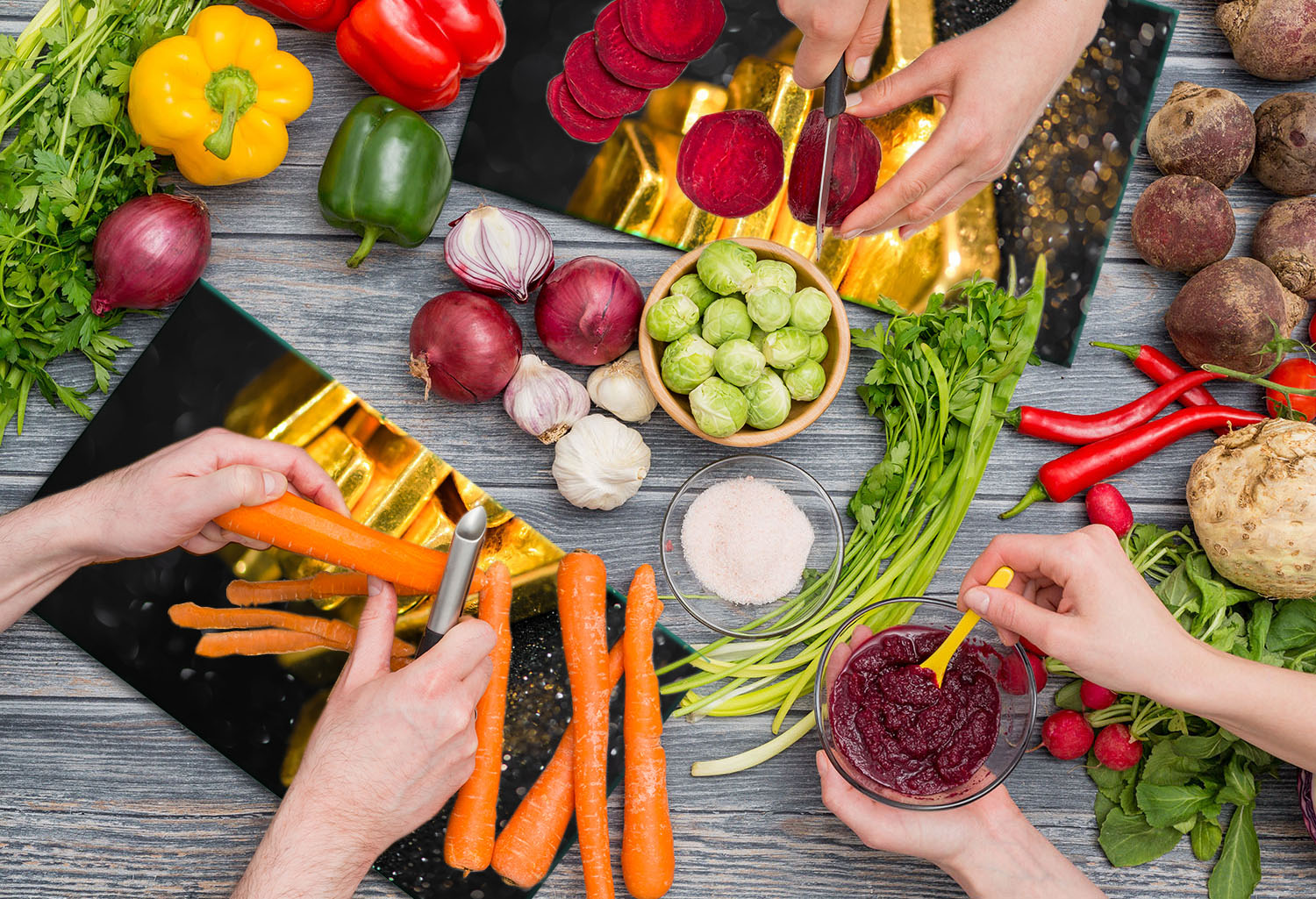 shumee Steklena deska za sekanje 2x 30x52 zlato