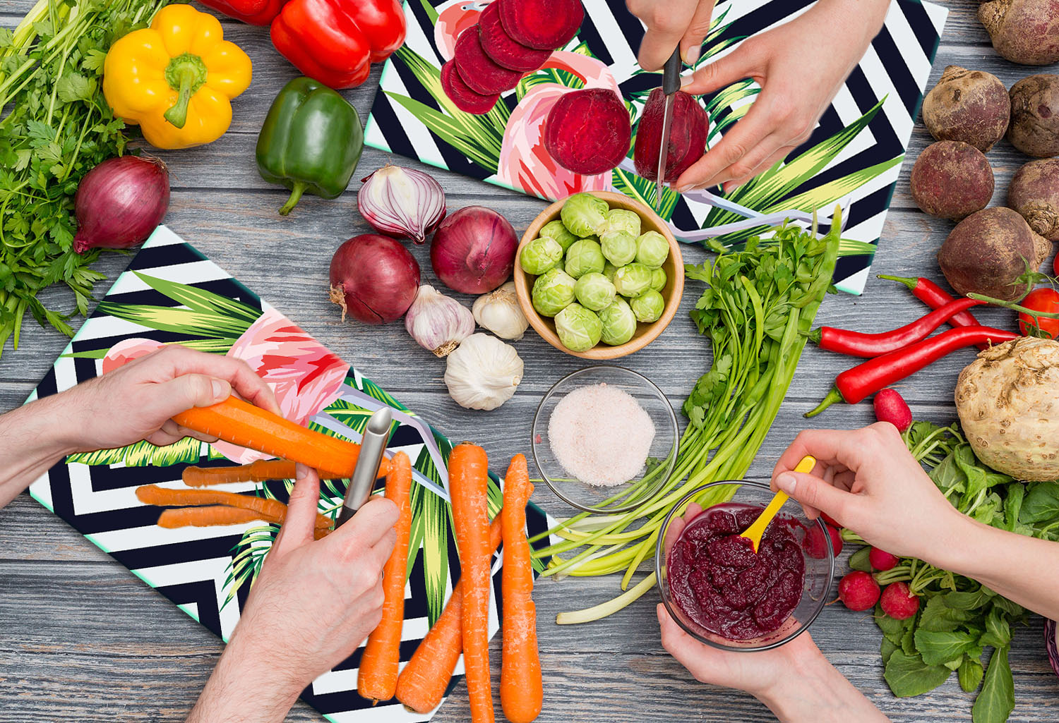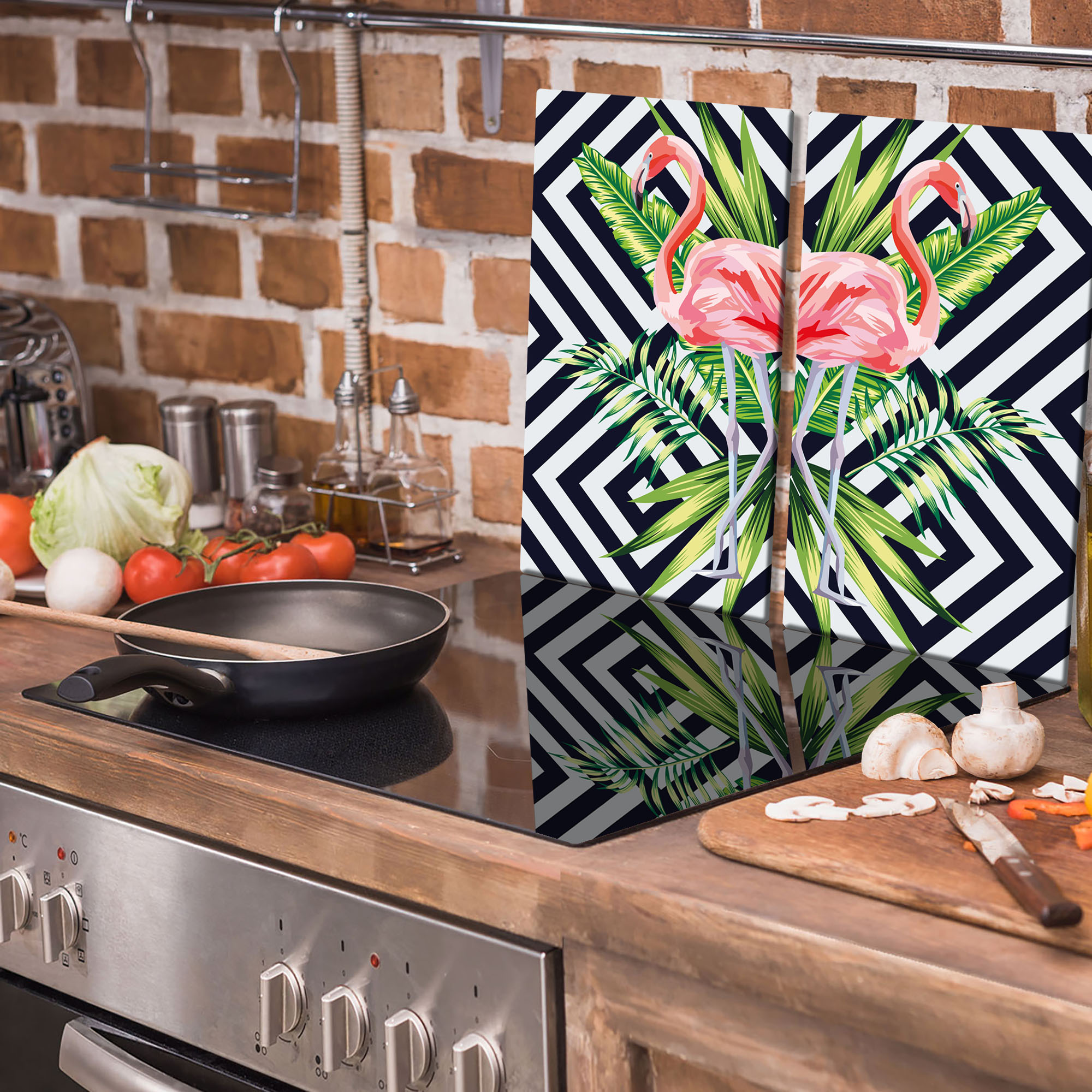 Steklena ploa za rezanje 2× 30×52 Flamingi Celoten opis