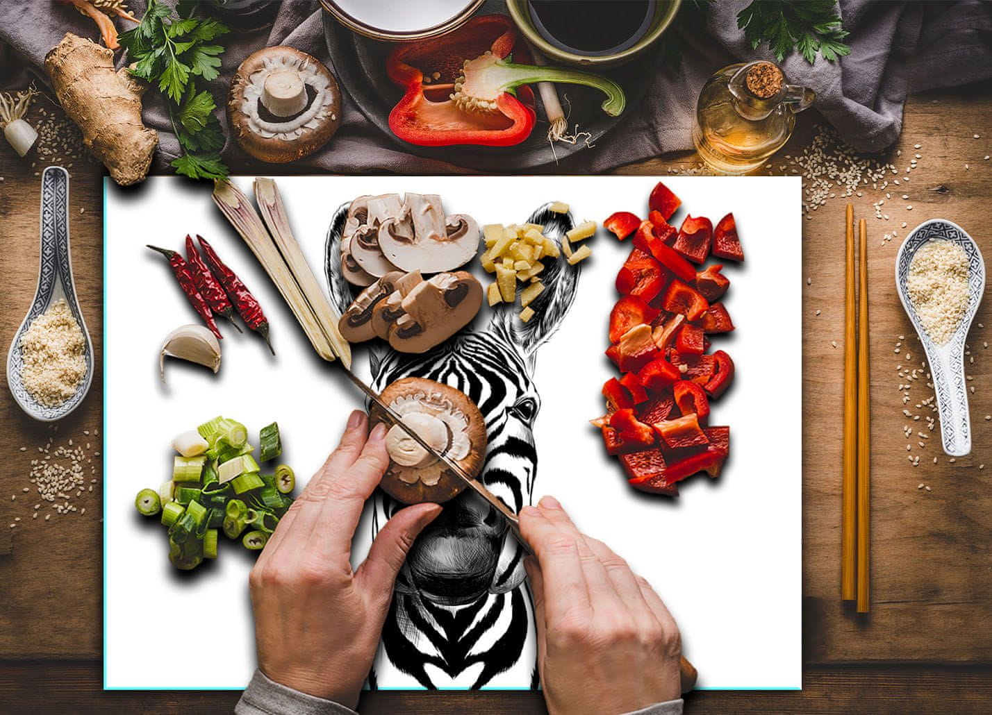 shumee Steklena sekalna ploa kaljena 30x22 Zebra