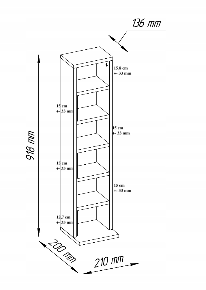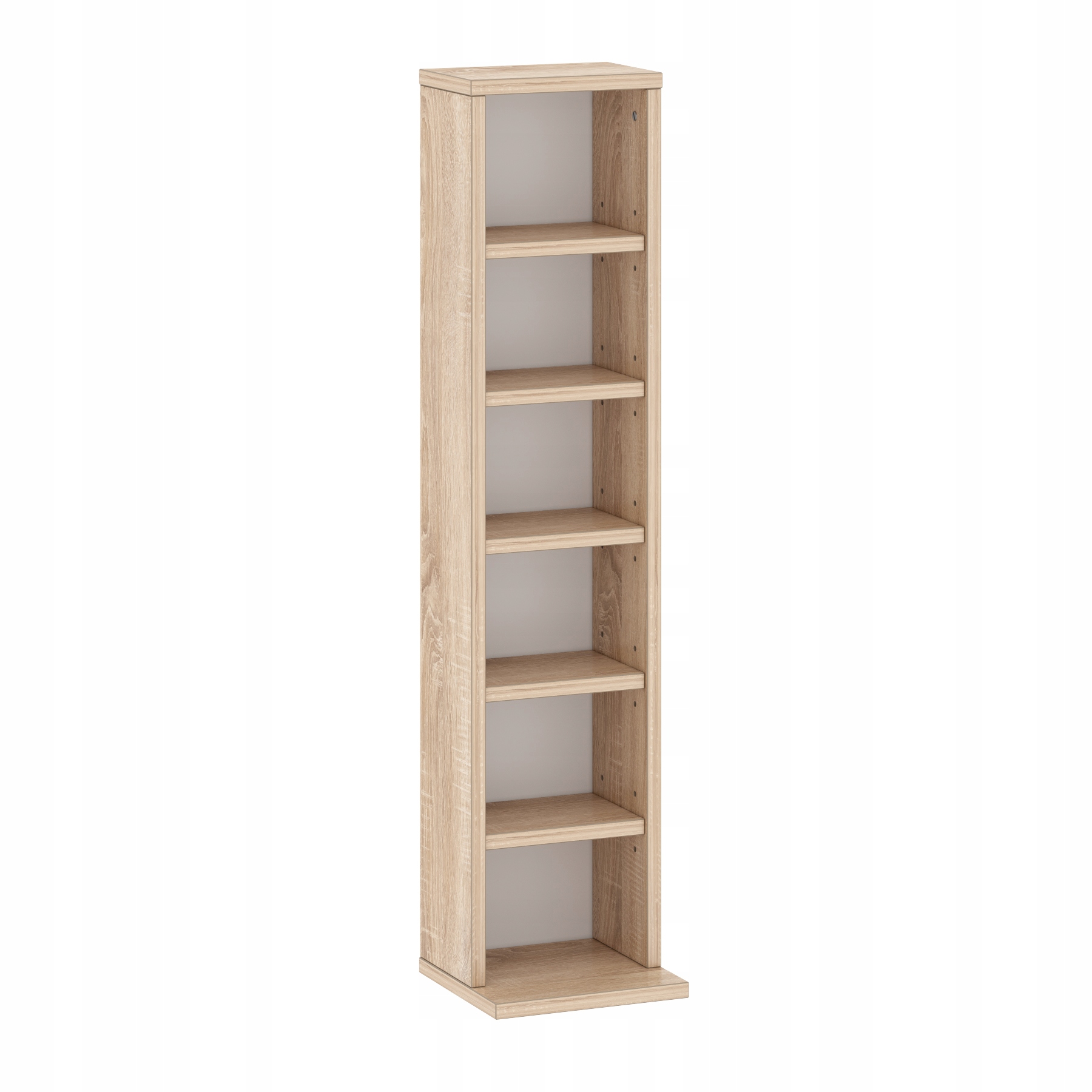 Ozke police vam pomagajo učinkovito izkoristiti prostor na steni, tudi v majhnih prostorih. Polico lahko uporabite za shranjevanje CD-jev/DVD-jev (na polico lahko shranite približno 102 CD-ja ali 36 DVD-jev/Blue Ray diskov) in manjših potrebščin. Polica ima nastavljive police, ki vam omogočajo, da prostor med policami prilagodite svojim potrebam. Z uporabo iverne plošče namesto masivnega lesa se pri izdelavi vsakega izdelka porabi manj lesa, kar prispeva k boljšemu okoljskemu odtisu.