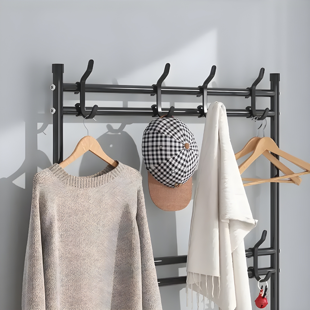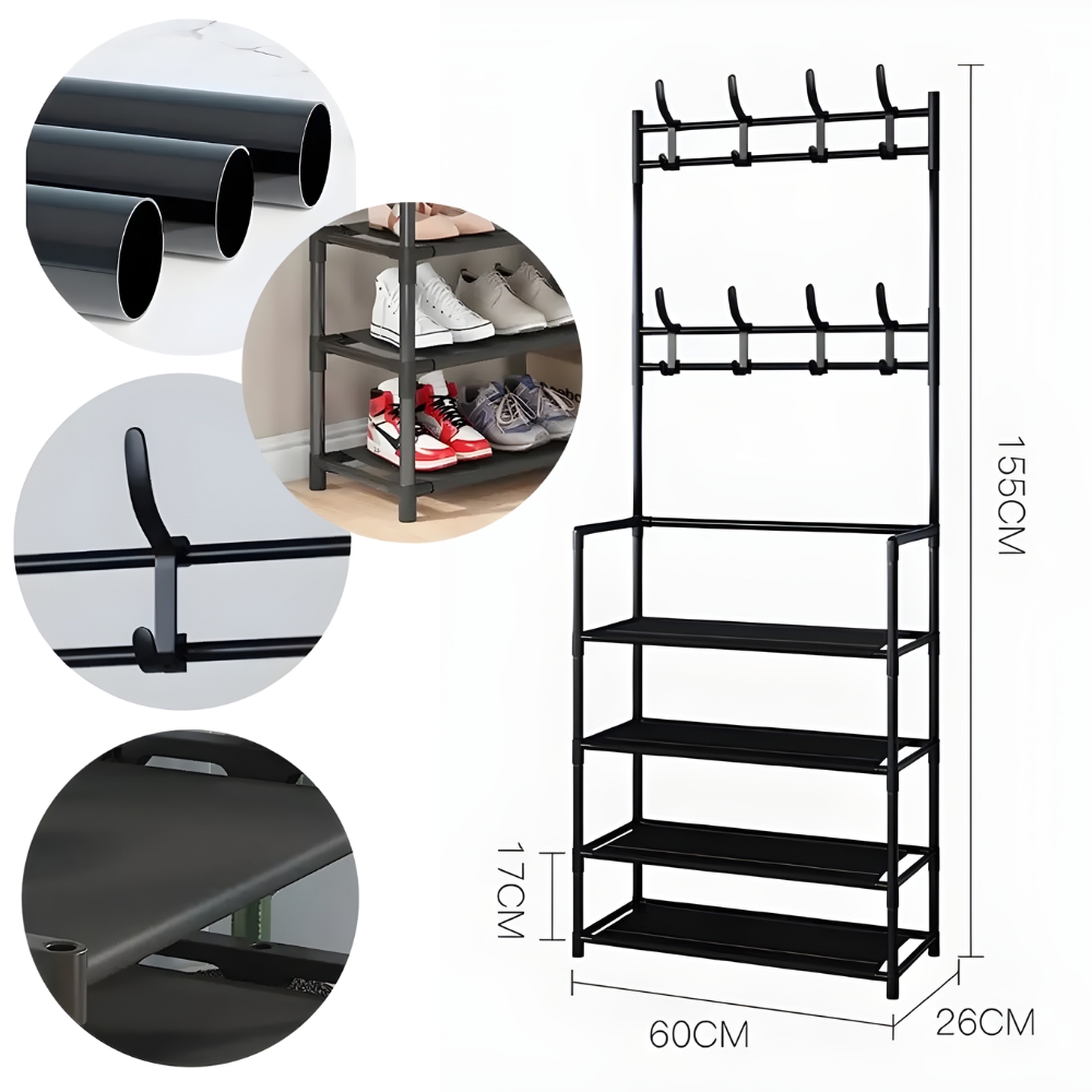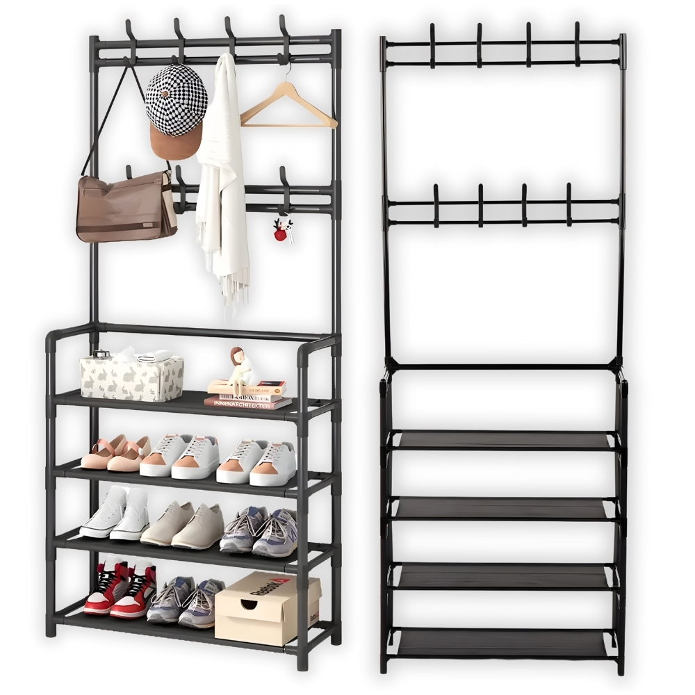 ✨ V svoj dom vnesite red in slog zahvaljujoč edinstvenemu obešalniku za plašče s policami za čevlje.