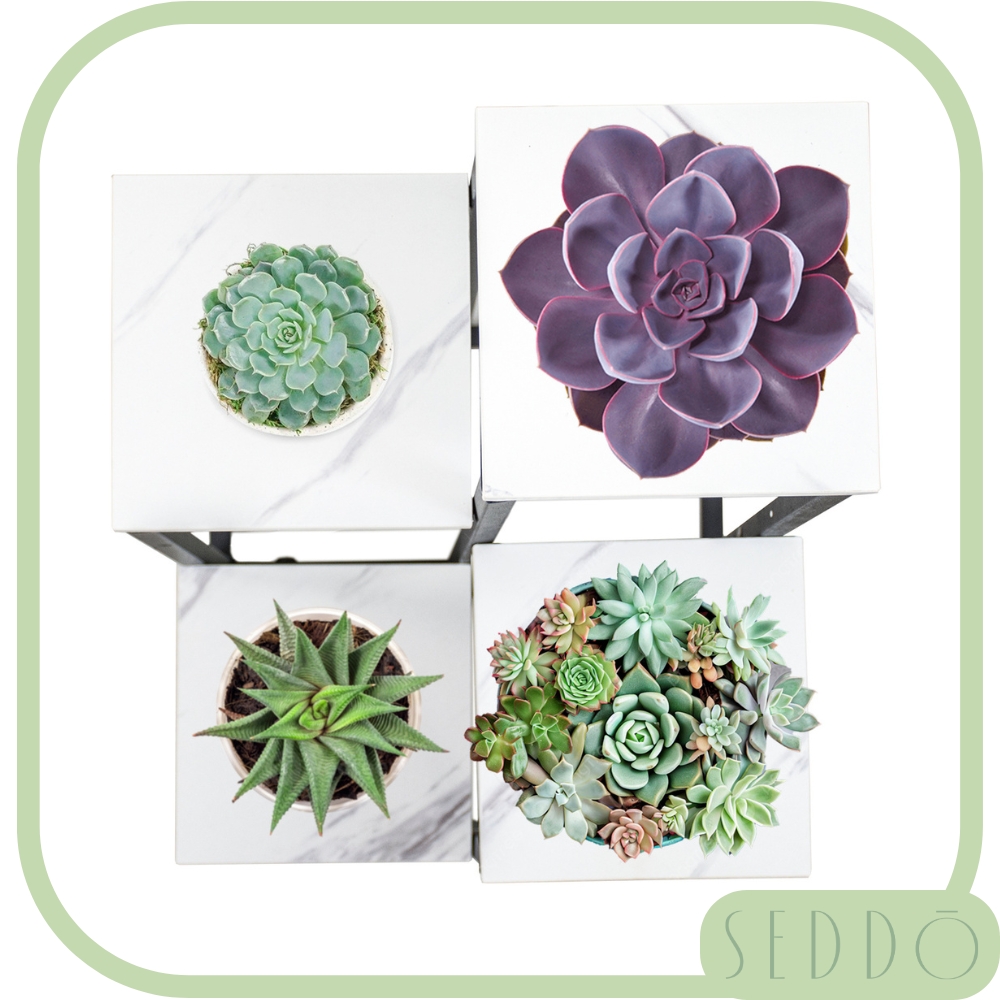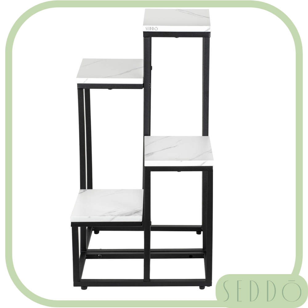 ✨ Zahvaljujoč kovinski konstrukciji in policam iz pohištvene plošče je stojalo za rože stabilno, vzdržljivo in se prilega sodobnim aranžmajem.