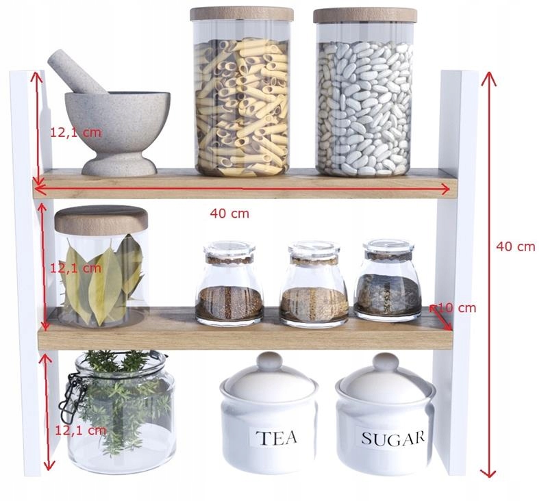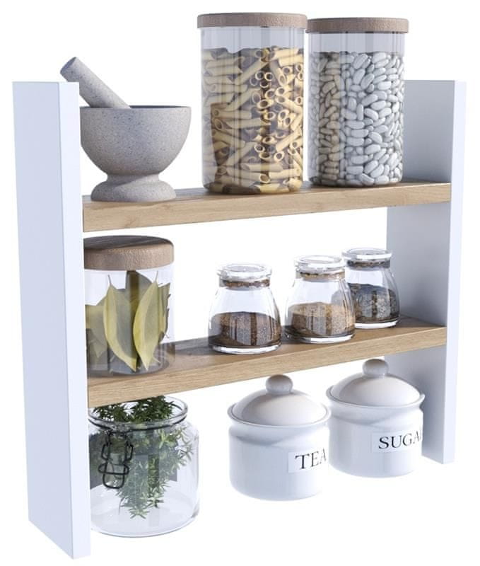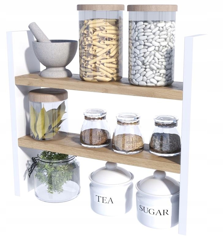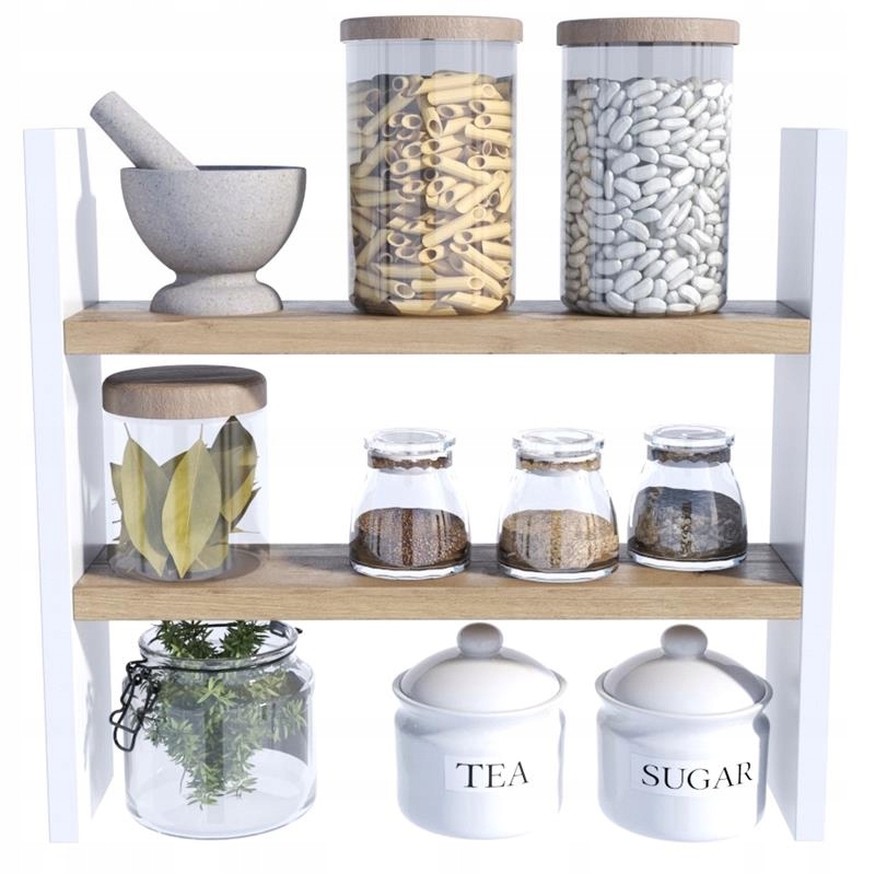 Nanjo lahko postavite kozarce za začimbe, steklenice, pločevinke za kavo in čaj ter druge kuhinjske pripomočke.