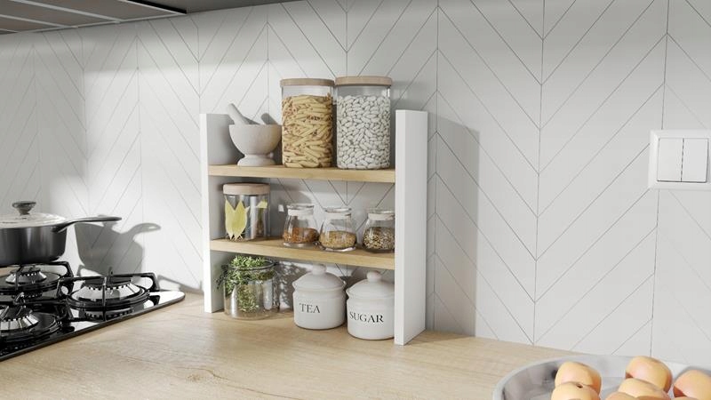 Praktična kuhinjska polica, ki jo lahko postavite na pult in ustvarite dodaten prostor za shranjevanje.