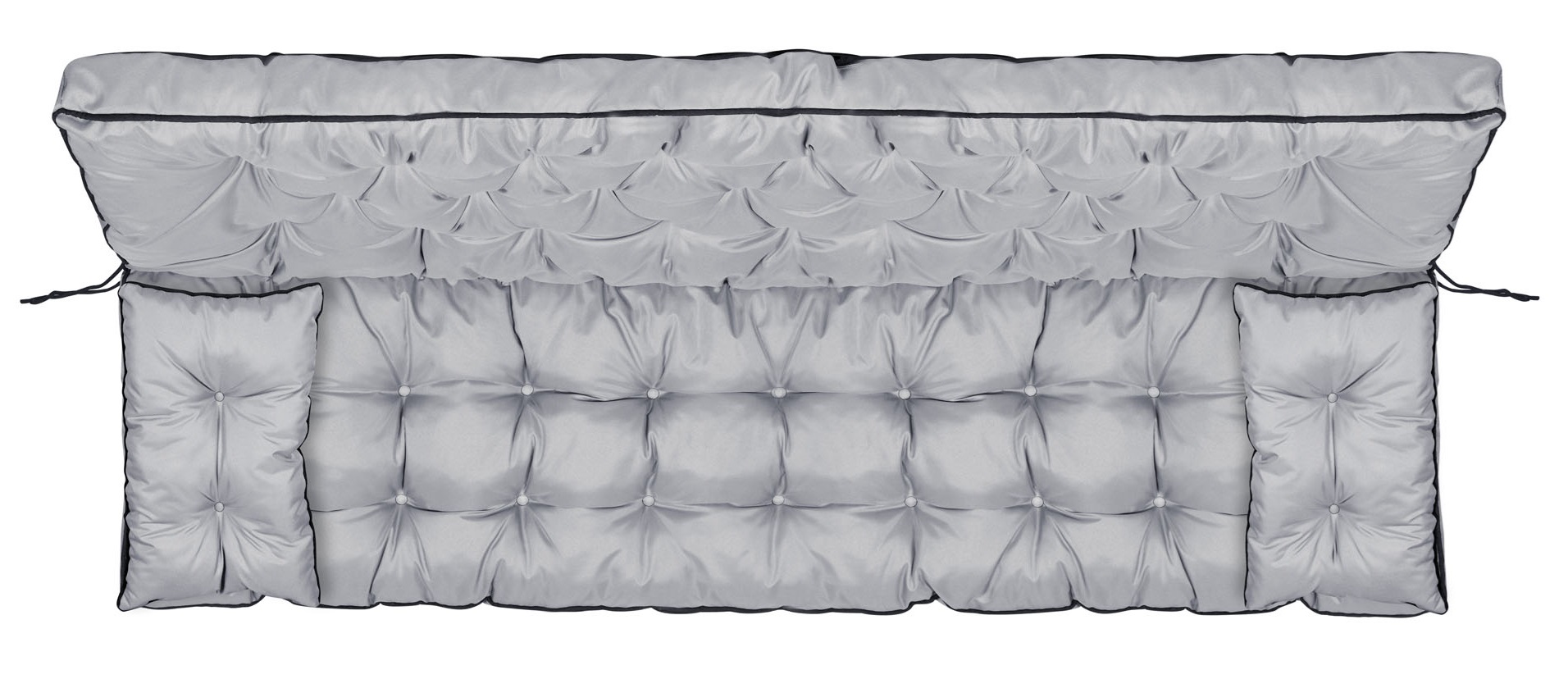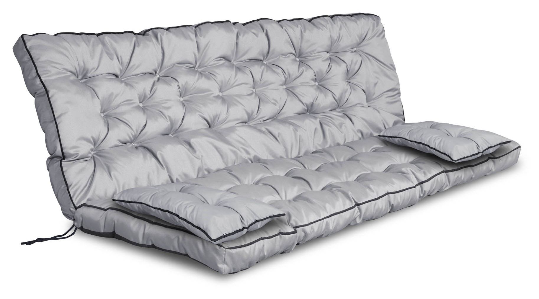 Komplet nepremočljivih blazin Z VISOKIMI STRANICAMI IN ROBOM za klop ali gugalnico + 2 mali v temno sivi barvi, UDOBJE in zadovoljstvo zagotovljeno!