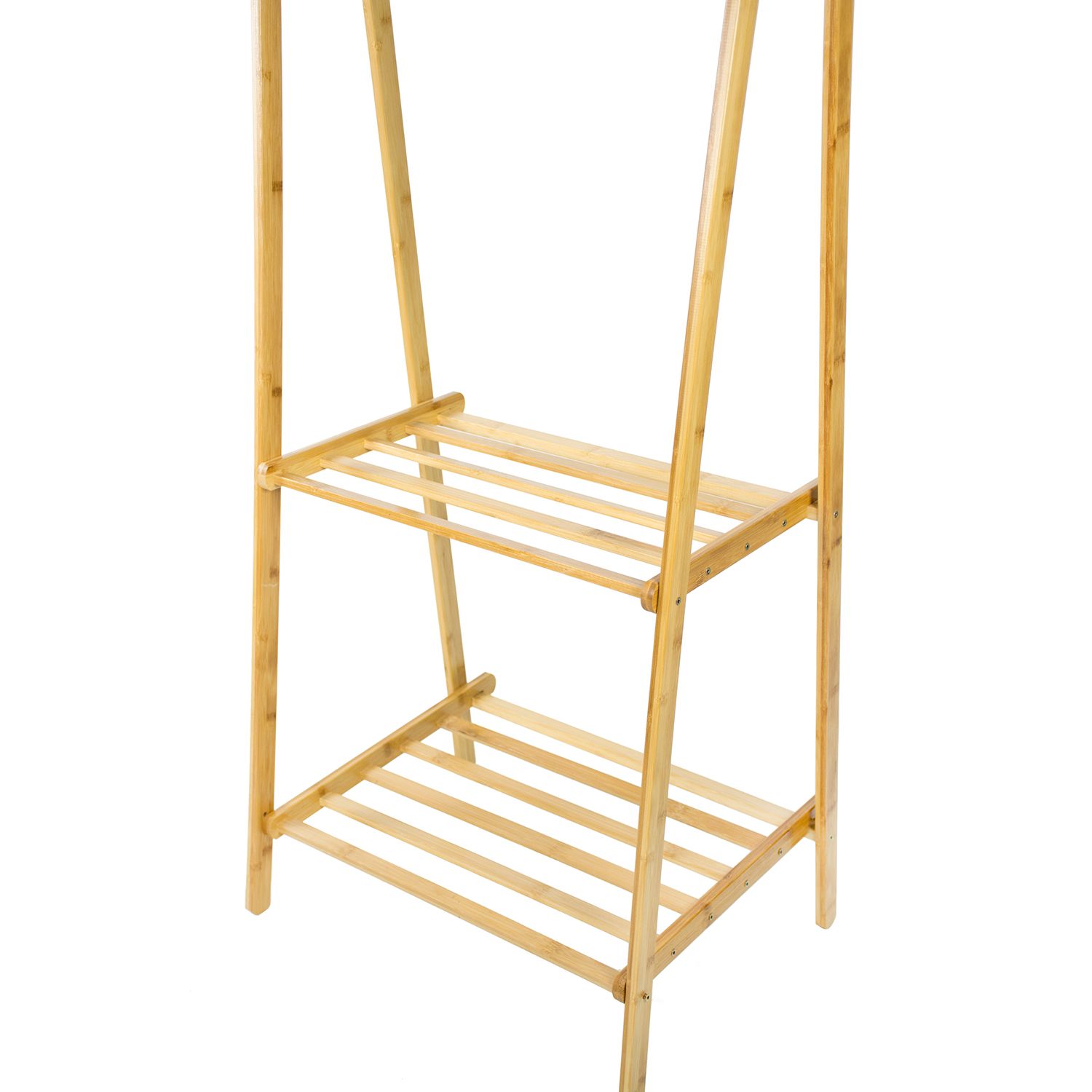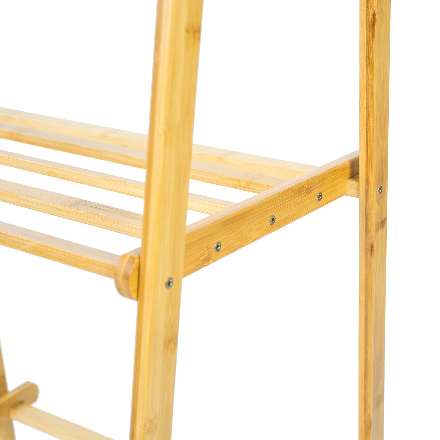 shumee Zložljiv bambusov obešalnik z dvema policama za čevlje, polico, stojalom in kavlji za hodnik