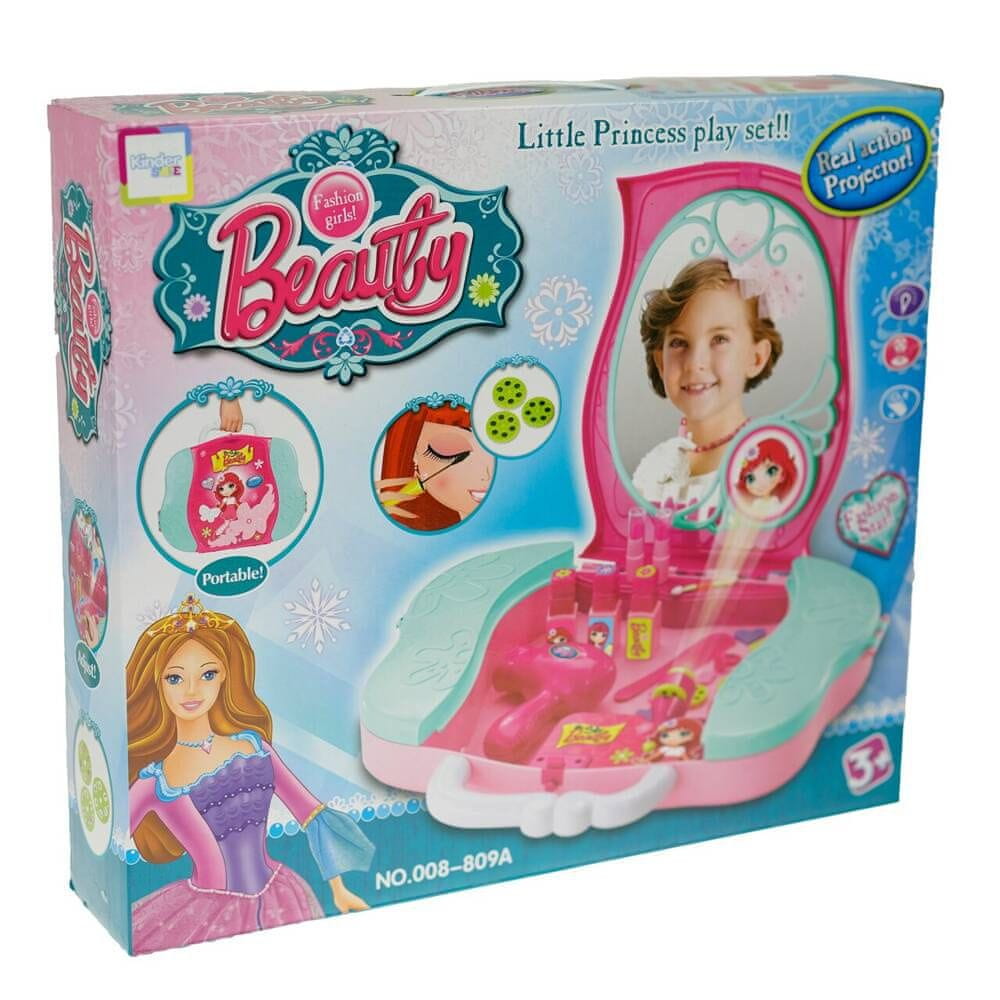 Fantastičen setza malo princesko, ki se rada ureja in ustvarja čudovite pričeske. Vsi dodatki so shranjeni vkul kovček-torbicaki, ko se raztegne, ustvari nekakšno postajo za lase in lepoto. Toaletna mizica imaprojektorna katerem lahko prikažete fotografije kozmetike, delov telesa in modela lutke. Toaletna mizica ima veliko ogledalo, stranske predale za kozmetiko, vključuje pa tudi imitacije kozmetičnih pripomočkov.