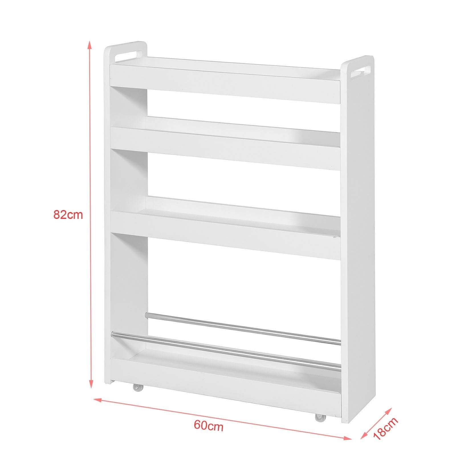 Ta ozek voziček za shranjevanje je popoln za maksimalen izkoristek prostora v kopalnicah ali kuhinjah. Zlahka premakljiv na kolesih pomaga organizirati nujne stvari v ozkih prostorih in ohranja vaše predmete na dosegu roke. Celoten opis