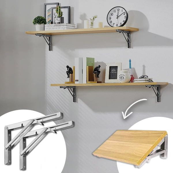 Nosilec je narejen tako, da ob neuporabi polico preprosto pospravite ob steno in s tem prihranite prostor v stanovanju.