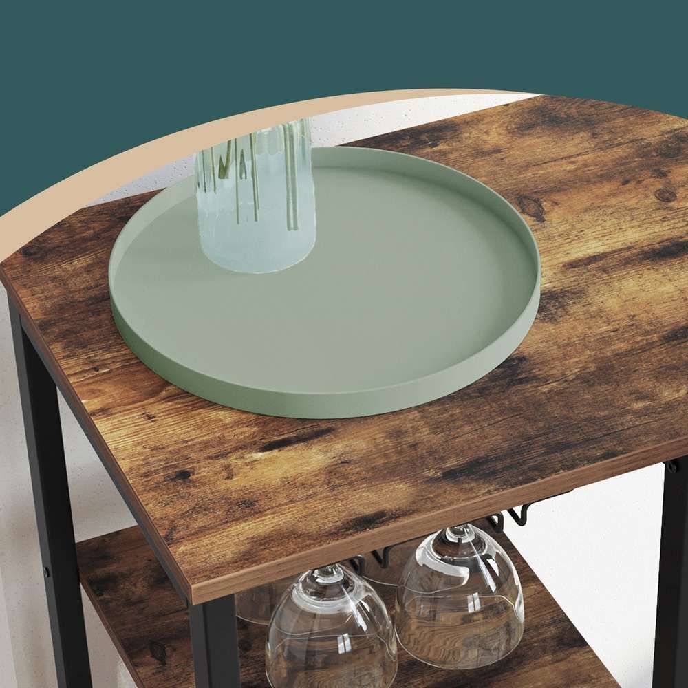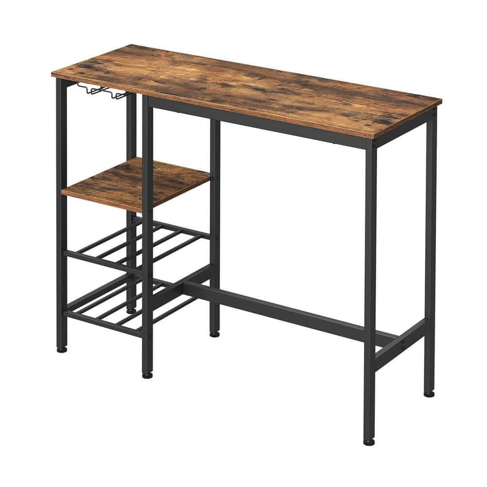 Ta barska tabela je zasnovana tako da prinese tako slog kot funkcionalnost v vaš dnevni prostor ali kuhinjo. S svojim industrijsko navdihnjenim videzom služi kot praktična površina za obedovanje zabavo ali postrežbo pijač. Vgrajeni držali za vinske kozarce in steklenice jo naredijo še posebej primerno za druženja in družabne priložnosti.