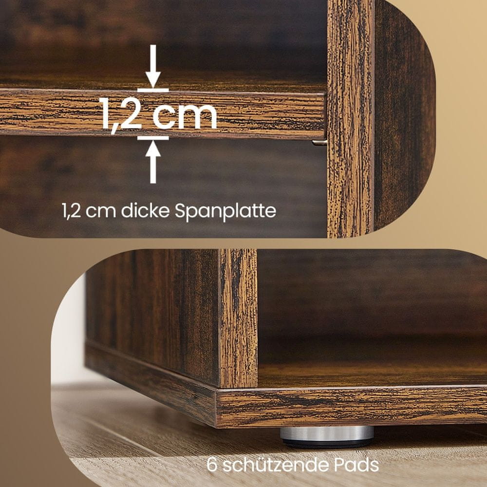 Ta klop za čevlje ponuja praktično rešitev za organizacijo obutve in dodatkov v vašem vhodu ali hodniku. Zasnovan z več odprtimi predelki in omarico zagotavlja dovolj prostora za shranjevanje ter hkrati služi kot udoben sedež. Njegov videz navdihnjen z vintage slogom je stilski dodatek k različnim notranjim opremam doma.