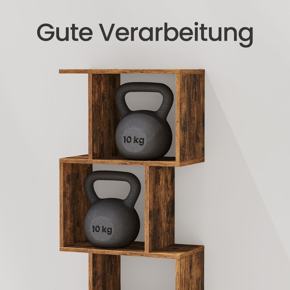 Ta prostostoječi knjižni regal je zasnovan tako da nudi veliko prostora za razstavljanje knjig dekorativnih predmetov ali osebnih stvari v vašem domu ali pisarni. Njegova večnivojska struktura je idealna za organizacijo različnih predmetov hkrati pa doda stilski pridih vsaki sobi. Trdna konstrukcija zagotavlja zanesljivo podporo za vaše potrebščine.