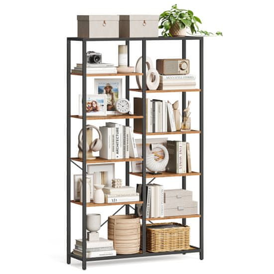 Ta prostorna 5-nadstropna knjižna polica je zasnovana za organizacijo in razstavljanje vaših knjig dekoracije in potrebščin v katerikoli dnevni sobi pisarni delovni sobi spalnici ali kuhinji. Njeni odprti predelki omogočajo shranjevanje predmetov različnih višin kar jo naredi vsestransko uporabno za različne potrebe shranjevanja. S trdnim ogrodjem in industrijskim slogom ta knjižna polica združuje zanesljivo oporo z modernim rustikalnim videzom. Material: Iverna plošča Jeklo Dimenzije: 100×30×170cm Barva: črna retro barva Oblika: Pravokotnik Postavitev (pohištvo): Desna Dolžina (cm): 100 Višina (cm): 170 Globina / širina (cm): 30 Material (podrobno): Kovina – Jeklo Material (podrobno): Les plošča – Plošče in lesni derivati Način postavitve: Postavitev na tla