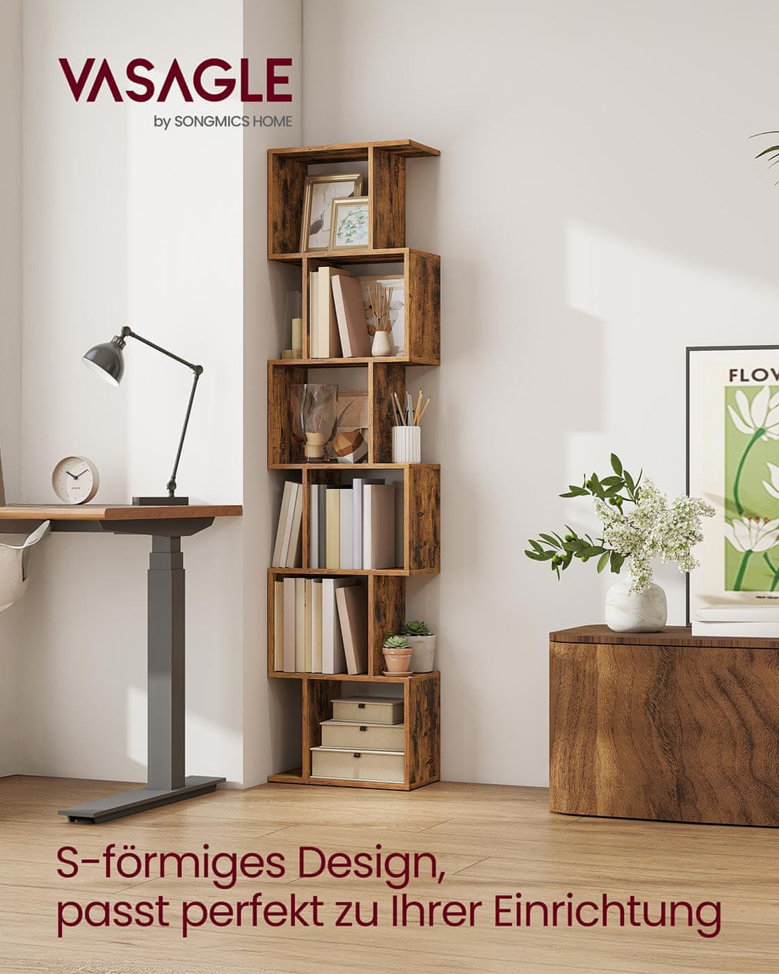 Ta samostoječi knjižni regal je zasnovan za prikaz vaših knjig dekorativnih predmetov ali zbirateljskih predmetov na stilski in urejen način. S svojim sodobnim videzom in več nivoji je primeren za dnevne sobe pisarne ali katerikoli prostor kjer želite razstaviti svoje najljubše predmete. Trdna konstrukcija zagotavlja zanesljivo podporo za vaše stvari.