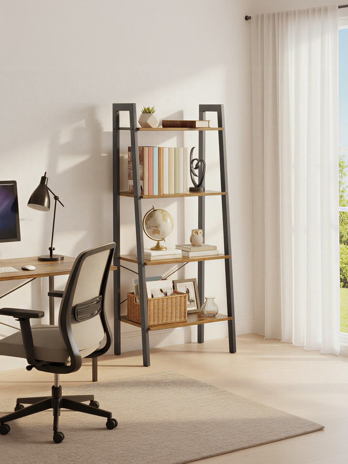 Songmics Knjižna polica 4-nivojska lestvična polica 345x56x1375 cm rjava