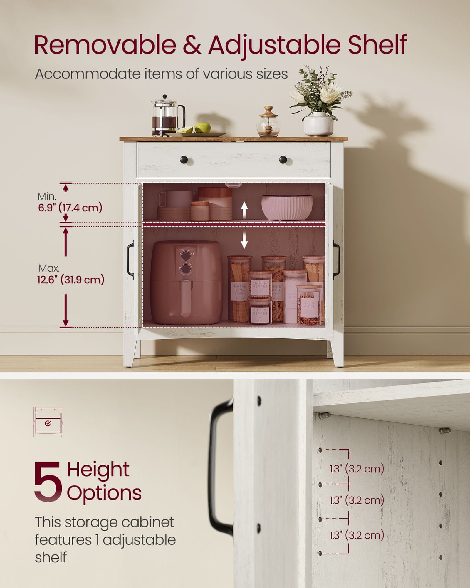 Ta omarahne v slogu podeželske hiše ponuja vsestransko organizacijo za vašo dnevno sobo, jedilnico ali kuhinjo. Prostorni predelki in nastavljiva polica omogočajo enostavno shranjevanje in dostopnost vaših potrebščin. Popolna izbira za dodajanje rustikalnega šarma vsakemu prostoru. Celoten opis