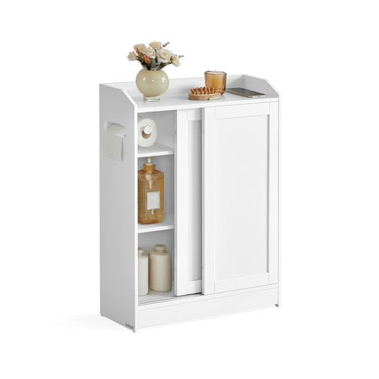 Ta kopalniška omarica ki prihrani prostor je zasnovana za praktično shranjevanje in organizacijo vaše kopalnice. Z drsnimi vrati nastavljivimi policami in namenskim držalom za toaletni papir ter ščetke se priročno prilega ob strani stranišča in pomaga ohranjati vaše potrebščine lepo urejene. Njegov sodoben videz ga naredi vsestranski dodatek k vsakemu kopalniškemu dekorju.