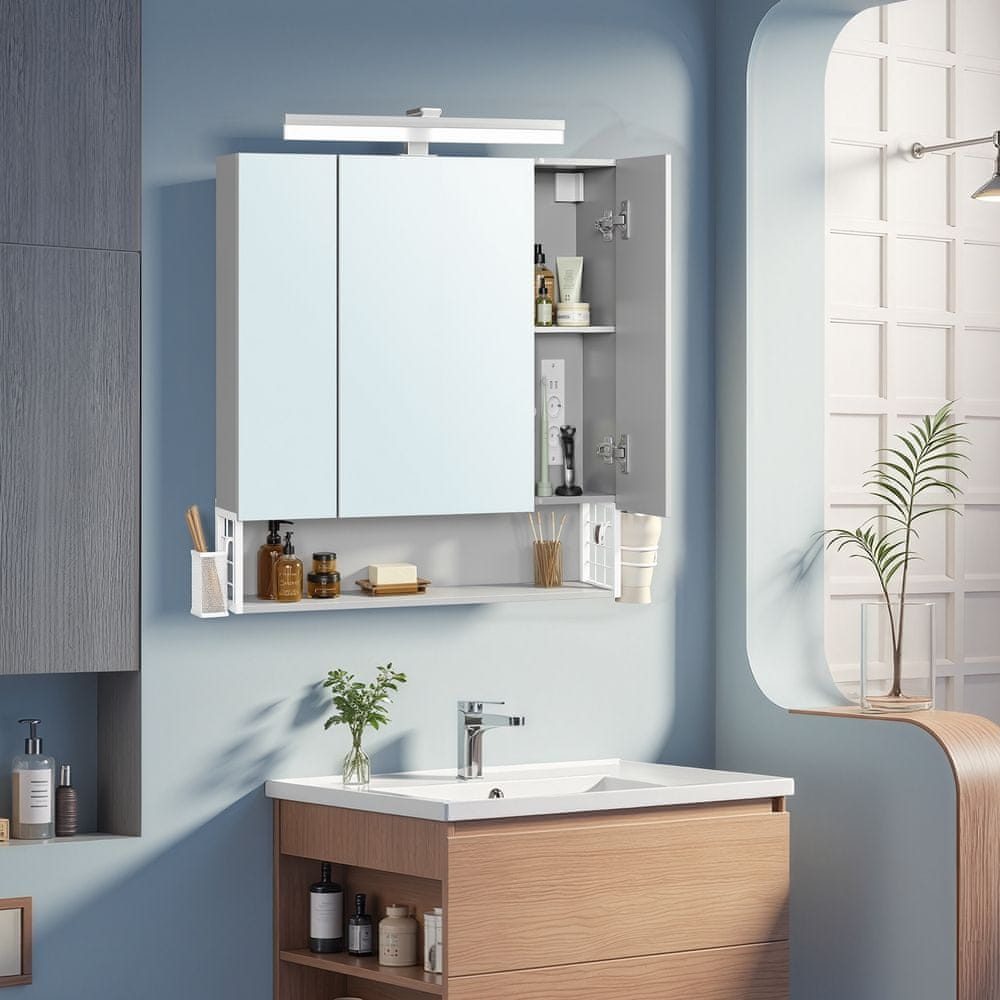 Ta kopalniška omarica nudi praktično in stilsko rešitev za shranjevanje v vaši kopalnici. Namenjena je montaži na steno ima ogledalna vrata in več predelkov ki vam pomagajo organizirati vaše toaletne potrebščine in dodatke. Njena sodobna podoba in funkcionalna zasnova jo naredijo primerno za različne stile kopalnic.