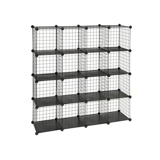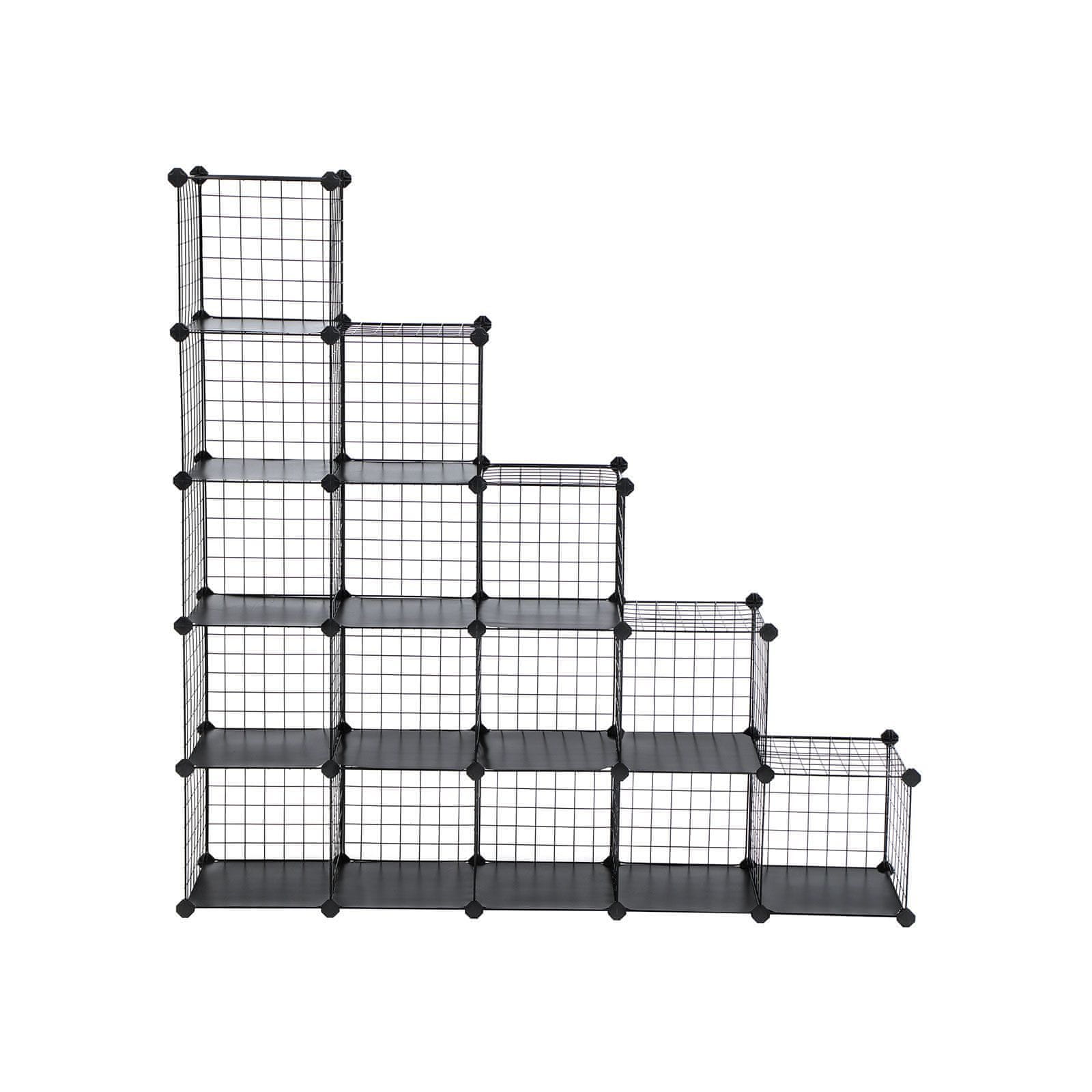 Songmics Modularna žična polica za shranjevanje 16 predalov 123x31x123 cm črna