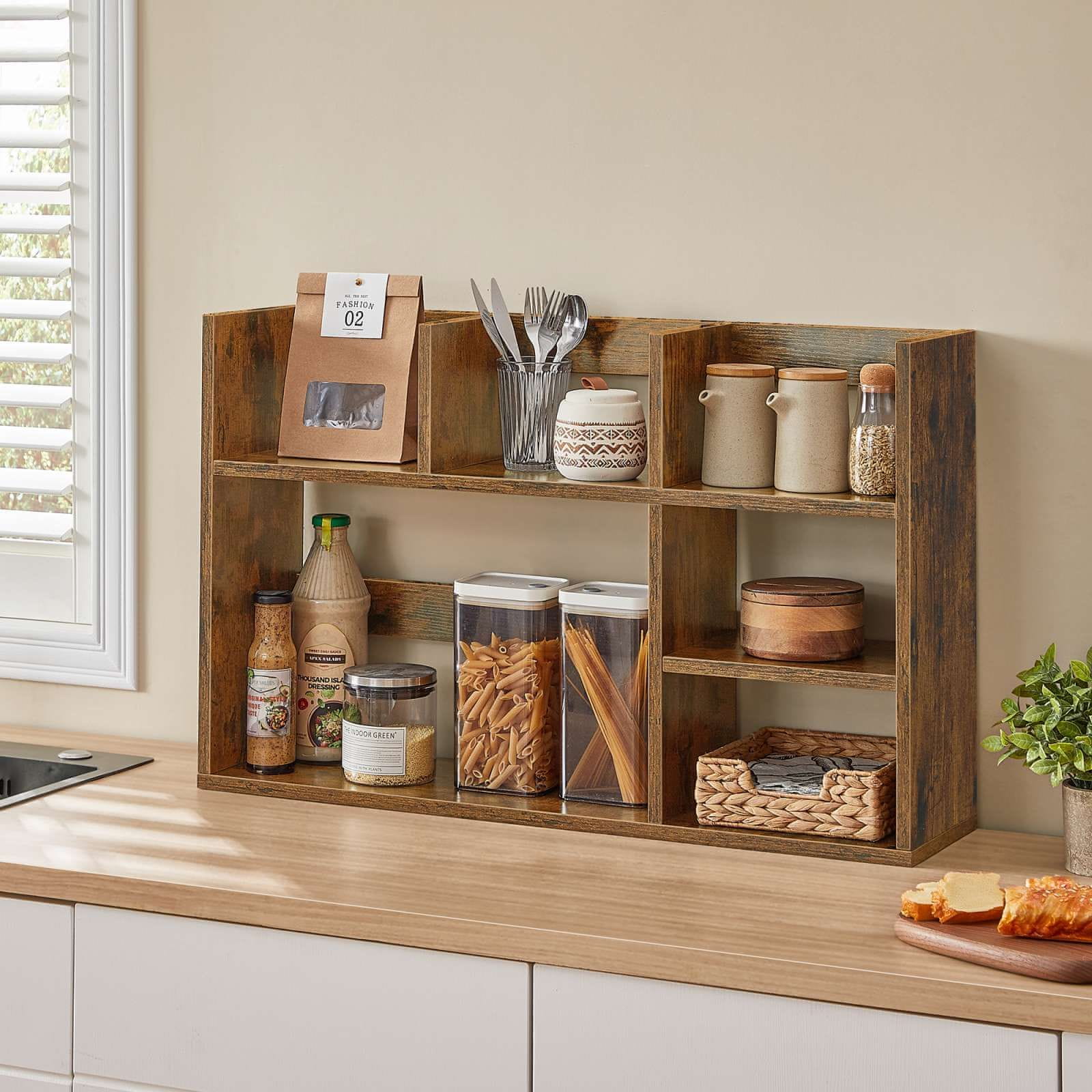 Ohranite svojo delovno površino urejeno s to leseno nadgradnjo za pisalno mizo z več policami za knjige, rastline in pisarniške potrebščine. Njena moderna zasnova doda stil in hkrati maksimizira prostor na vaši mizi v vsakem prostoru. Idealna za domače pisarne in učne kotičke. Celoten opis