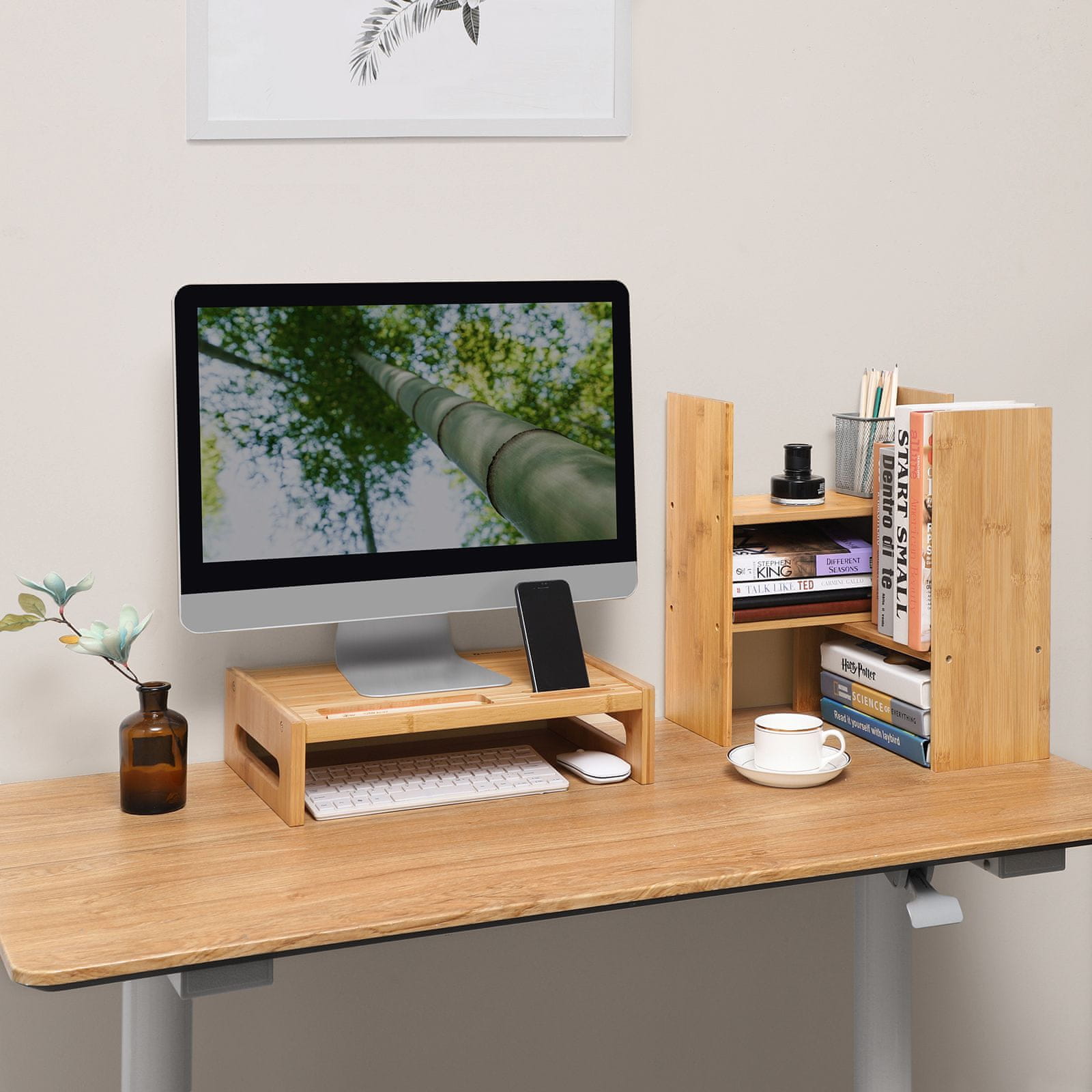 Ta bambusova namizna organizator je zasnovan za ohranjanje urejenega in učinkovitega delovnega prostora, saj omogoča enostaven dostop do vaših nujnih predmetov. Njegova prilagodljiva modularna struktura vam omogoča, da ureditev prilagodite svojim potrebam, zato je primeren za uporabo v pisarni, kuhinji ali kopalnici. Naravni bambus doda topel in eleganten pridih vsakemu prostoru ter zagotavlja trpežno funkcionalnost.