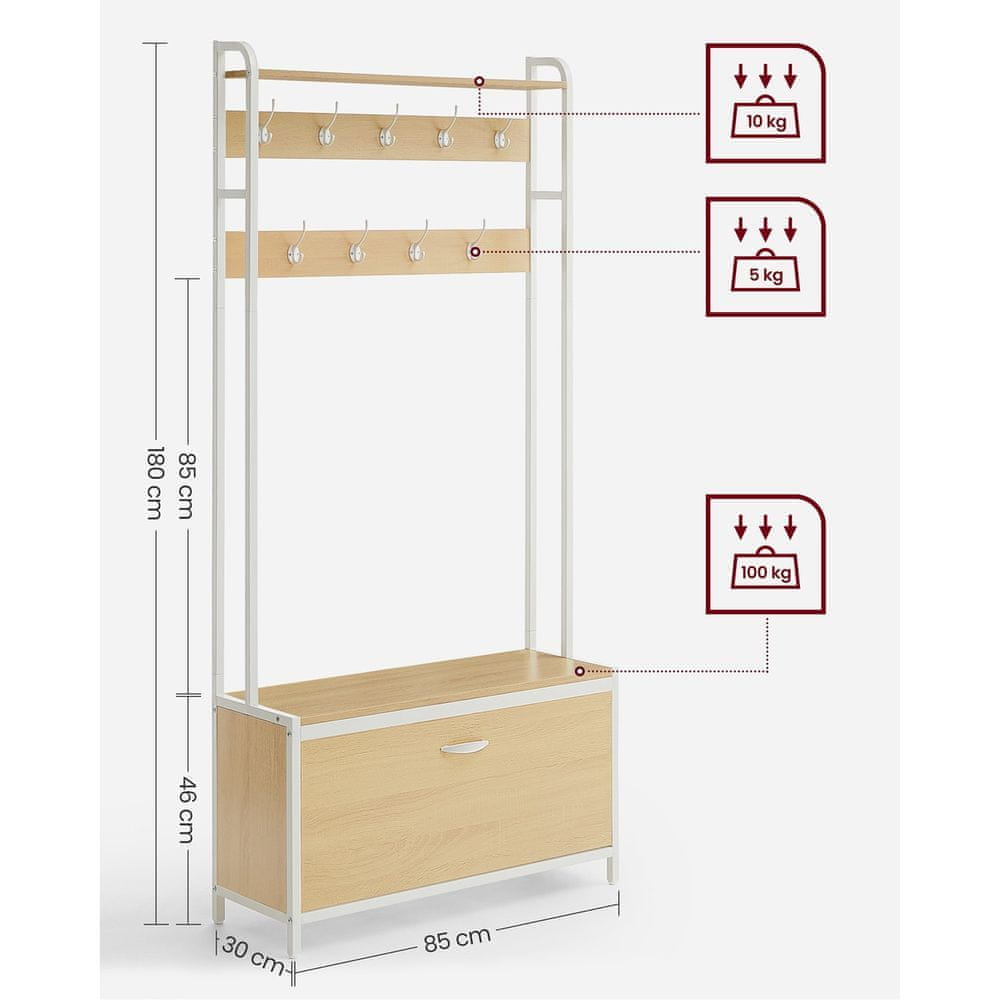 Songmics Obešalnik s klopjo in omarico za čevlje 85x30x180 cm rjav shranjevanje