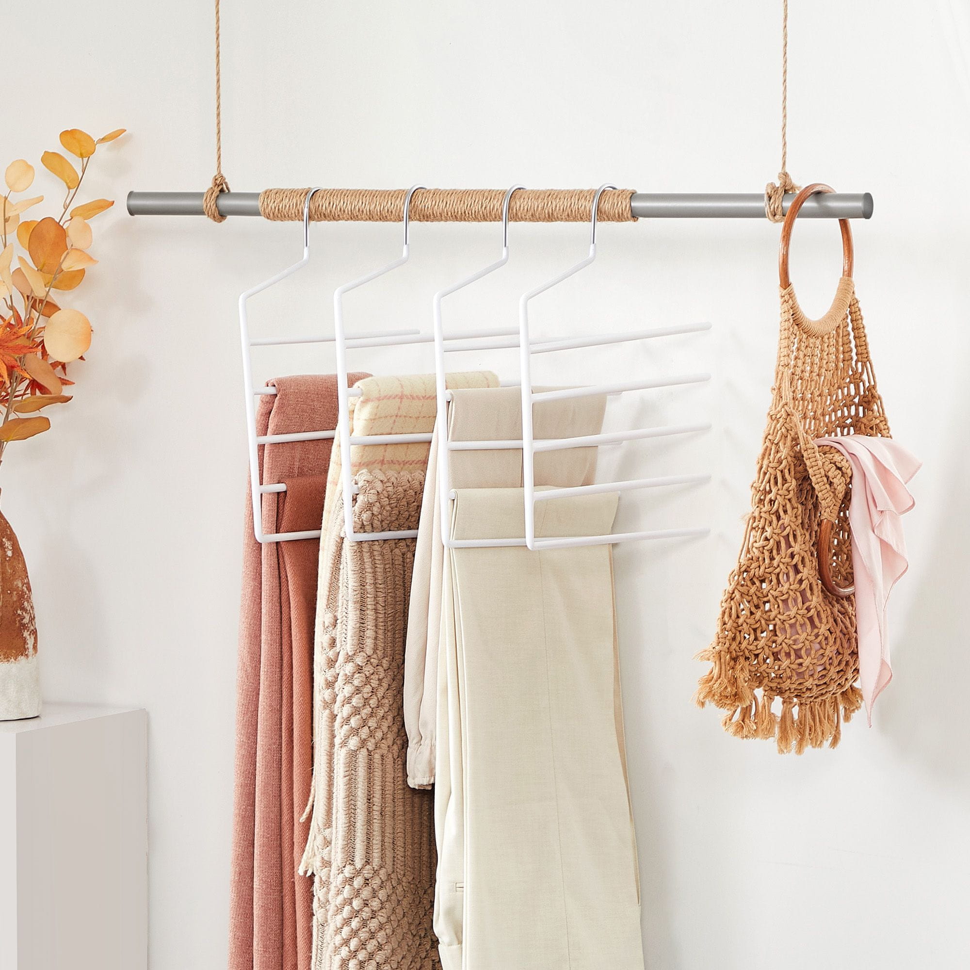 Ohranite svojo omaro urejeno in brez nereda s temi prostorsko varčnimi obešalniki z več palicami, ki so kot nalašč za urejeno shranjevanje hlač, kavbojk, brisač ali šalov. Nedrseča zasnova preprečuje padanje oblačil in omogoča enostaven dostop do vsega. Celoten opis