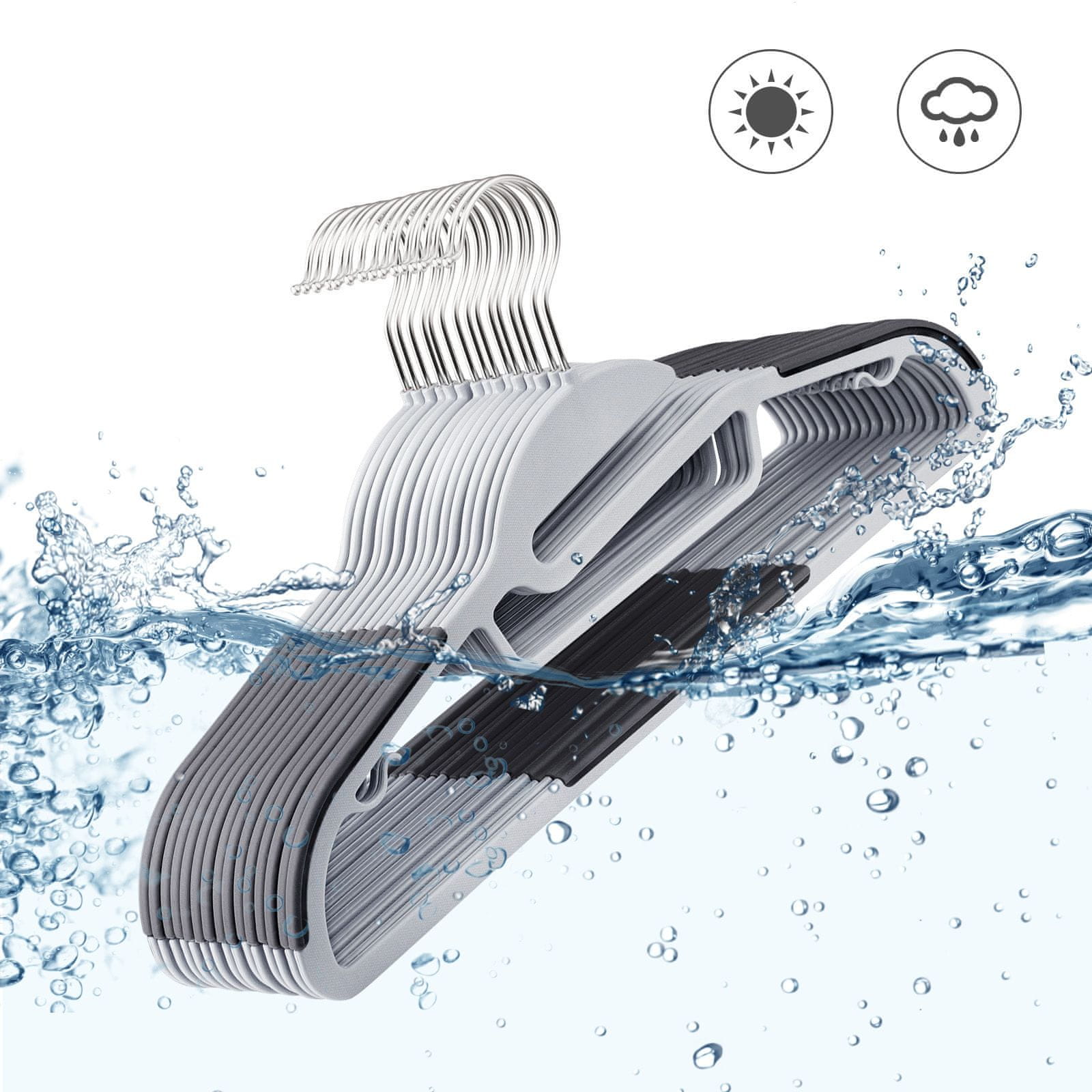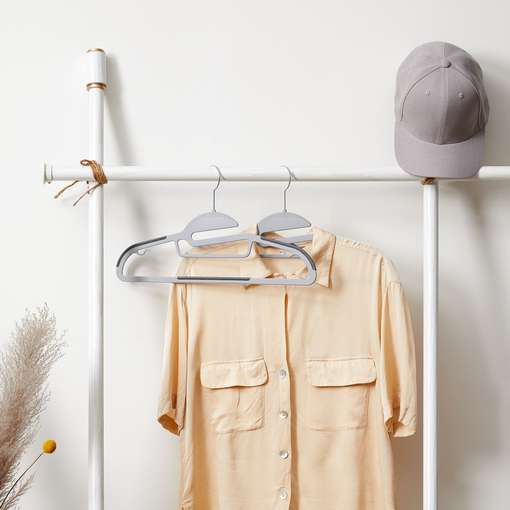 Ti vzdržljivi plastični obešalniki pomagajo ohranjati vašo garderobo urejeno in maksimalno izkoristiti prostor v omari. Z zasnovo, ki preprečuje drsenje oblačil, so idealni za varno obešanje različnih kosov oblačil. Popolni za urejeno in pregledno shranjevanje. Celoten opis