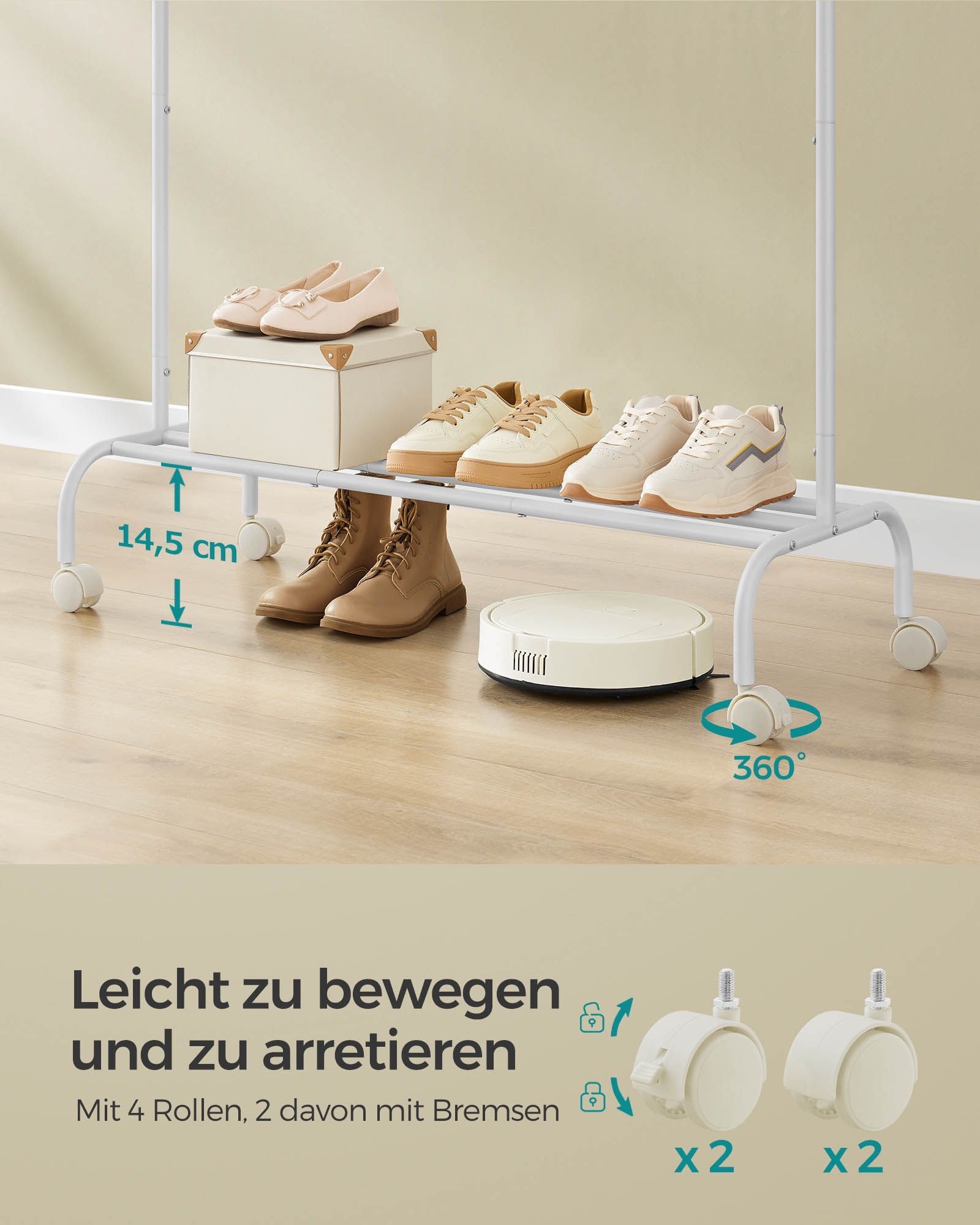 Ta mobilni obešalnik za oblačila ponuja praktično rešitev za organizacijo in shranjevanje oblačil v različnih prostorih kot so spalnice garderobe ali vhodi. Oblikovan za vsestranskost in enostavno premikanje je primeren tako za vsakodnevno uporabo kot začasno shranjevanje. Njegova robustna konstrukcija zagotavlja zanesljivo podporo za različne vrste oblačil.