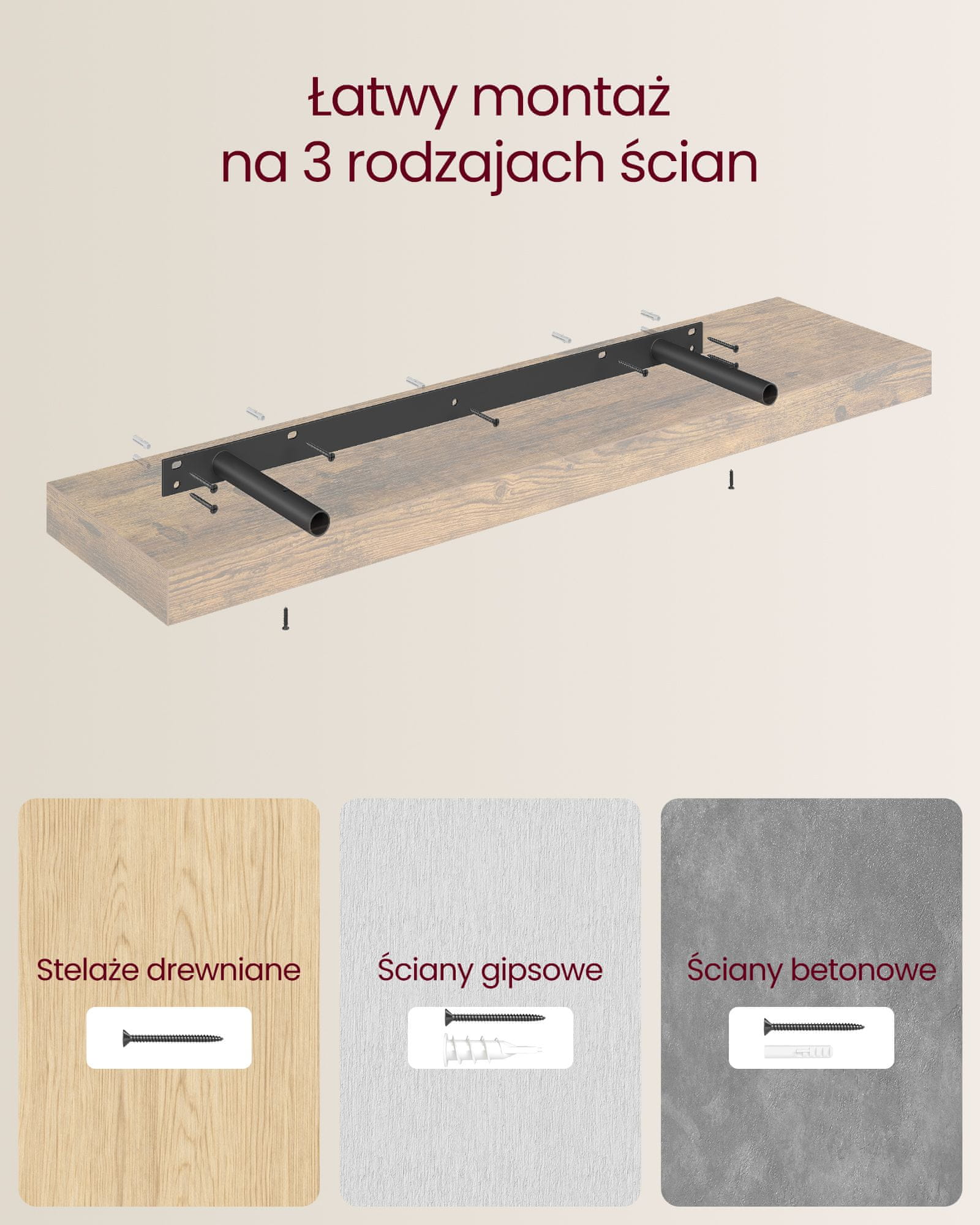 Songmics Plavajoča polica, LWS28BX, 80x20x3,8 cm, rjava