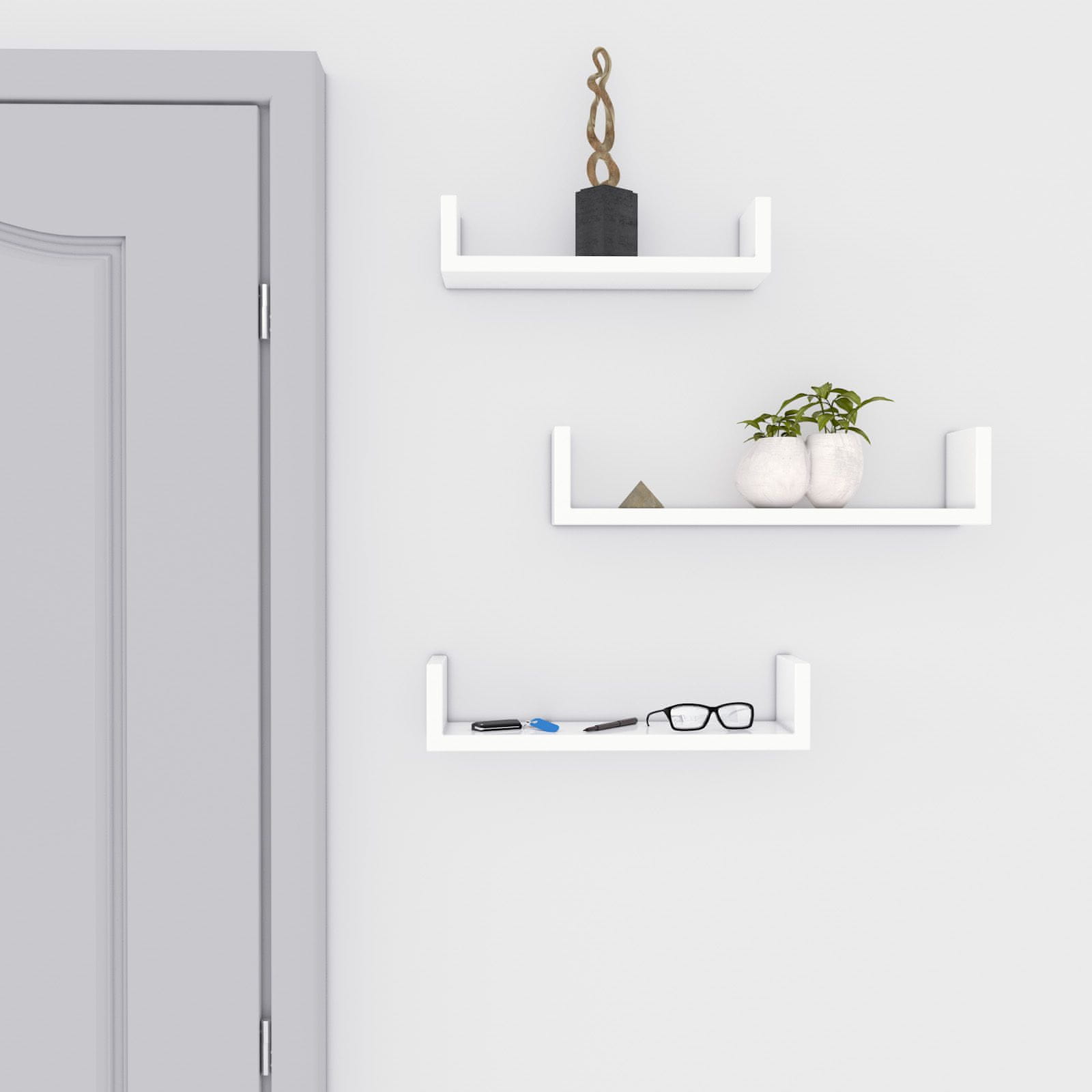Songmics Set stenskih polic U-oblike viseče police 30x10x7 cm 35x10x8 cm 40x10x9 cm bela