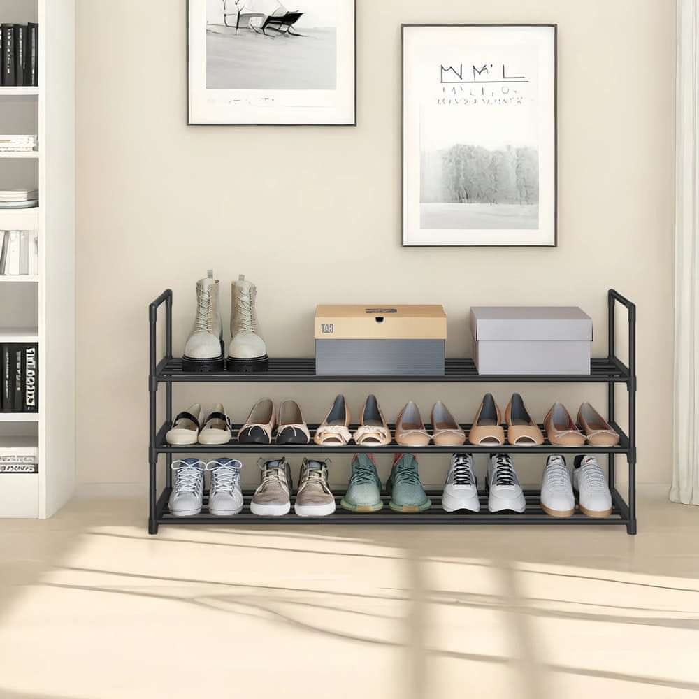 Songmics Stojalo za čevlje 3 nivoji 30x116x55 cm črno
