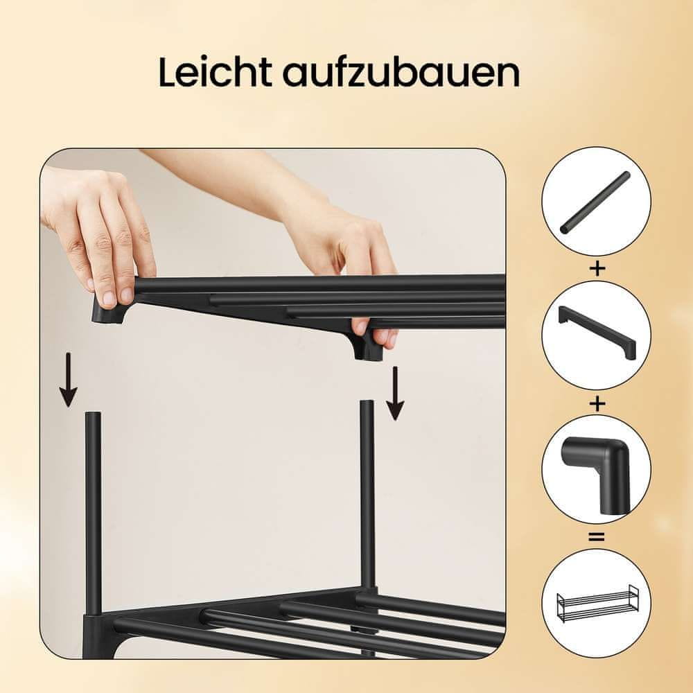 Ta kovinski regal za čevlje nudi praktično in prostor varčno rešitev za organizacijo obutve v hodniku ali dnevni sobi. Oblikovan za enostavno sestavljanje zagotavlja dovolj prostora za več parov čevljev in ga je mogoče zložiti za maksimalno izrabo vertikalnega prostora. Njegova trdna konstrukcija zagotavlja zanesljivo podporo za vašo zbirko čevljev.
