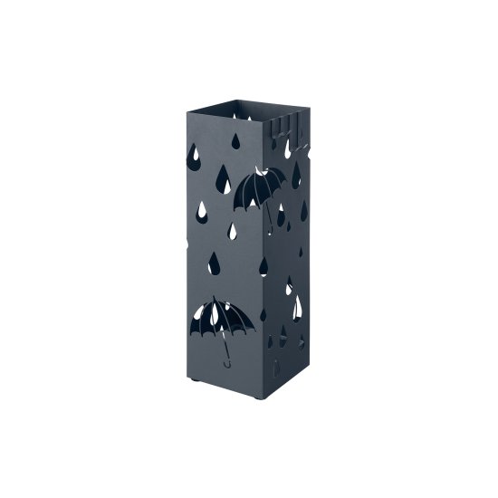 Ta kovinski stalak za dežnike je zasnovan za ohranjanje vašega vhoda urejenega in suhega z zagotavljanjem namenski prostor za dežnike. Njegova kvadratna oblika in integrirana posoda za zbiranje vode preprečujeta kapljanje vode na tla medtem ko vključeni kljuke nudijo dodatno shranjevanje za majhne dodatke. Stojalo je primerno tako za domačo kot pisarniško uporabo saj združuje funkcionalnost z modernim videzom.