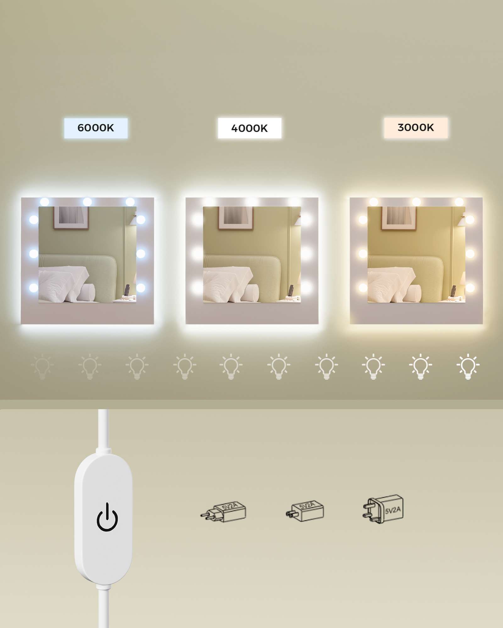 Ta elegantna toaletna mizica je zasnovana tako da zagotavlja funkcionalen in stilski prostor za vašo dnevno lepotno rutino. Z veliko delovno površino več predali in velikim ogledalom z integrirano LED osvetlitvijo nudi dovolj prostora za shranjevanje in optimalno vidljivost. Njena sodobna zasnova jo naredi popoln dodatek vsaki spalnici ali garderobni sobi.